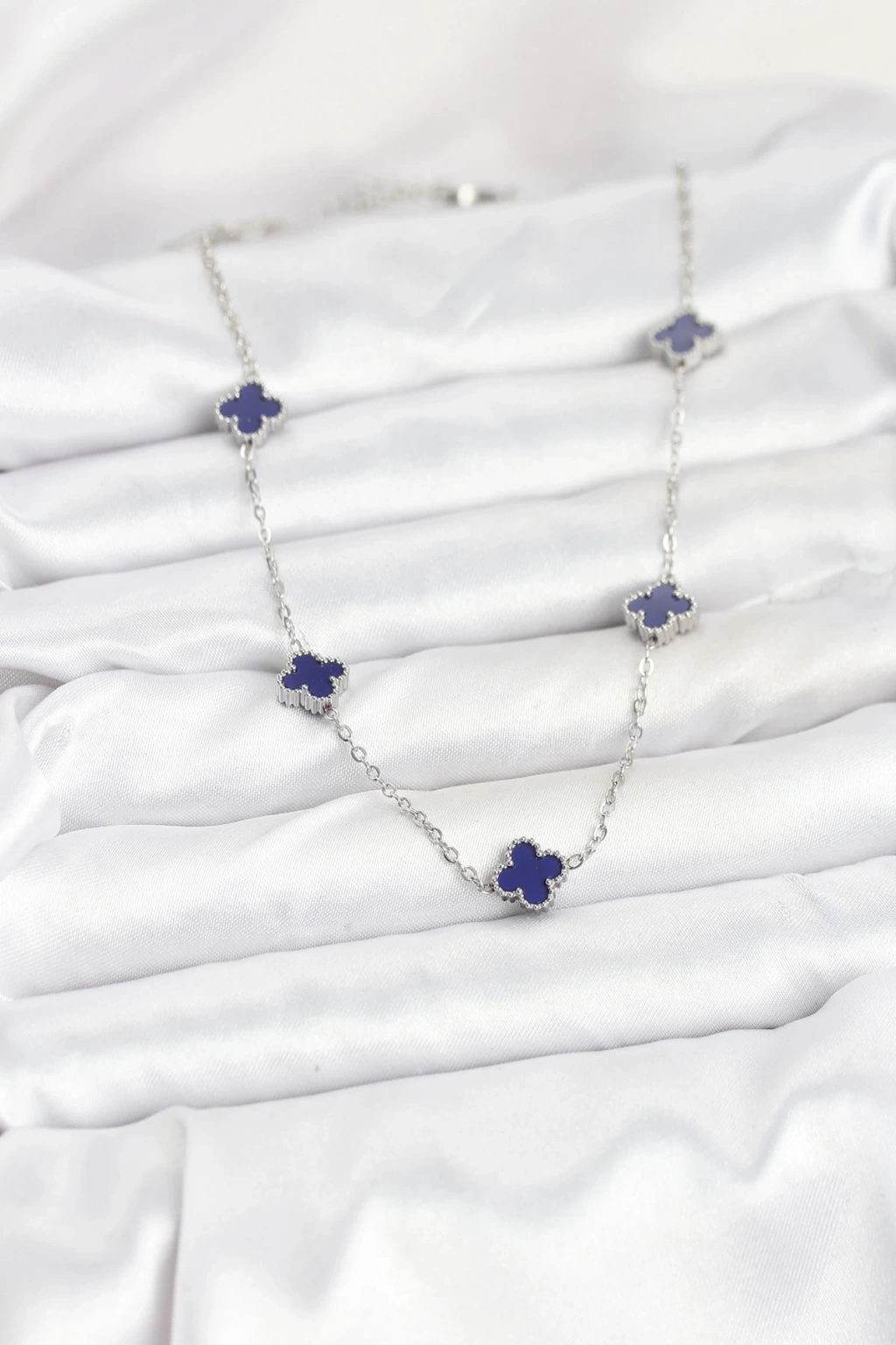 BFS 316L Çelik Zincir Gümüş Renk Lacivert Baby Boy Yonca Kadın Kolye