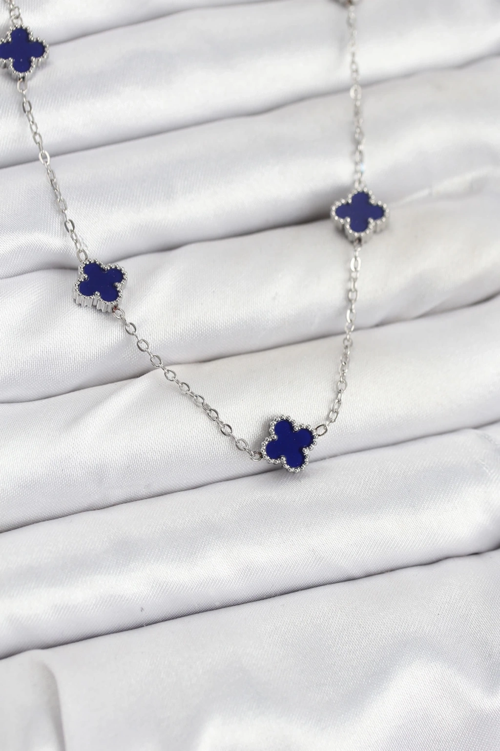 BFS 316L Çelik Zincir Gümüş Renk Lacivert Baby Boy Yonca Kadın Kolye