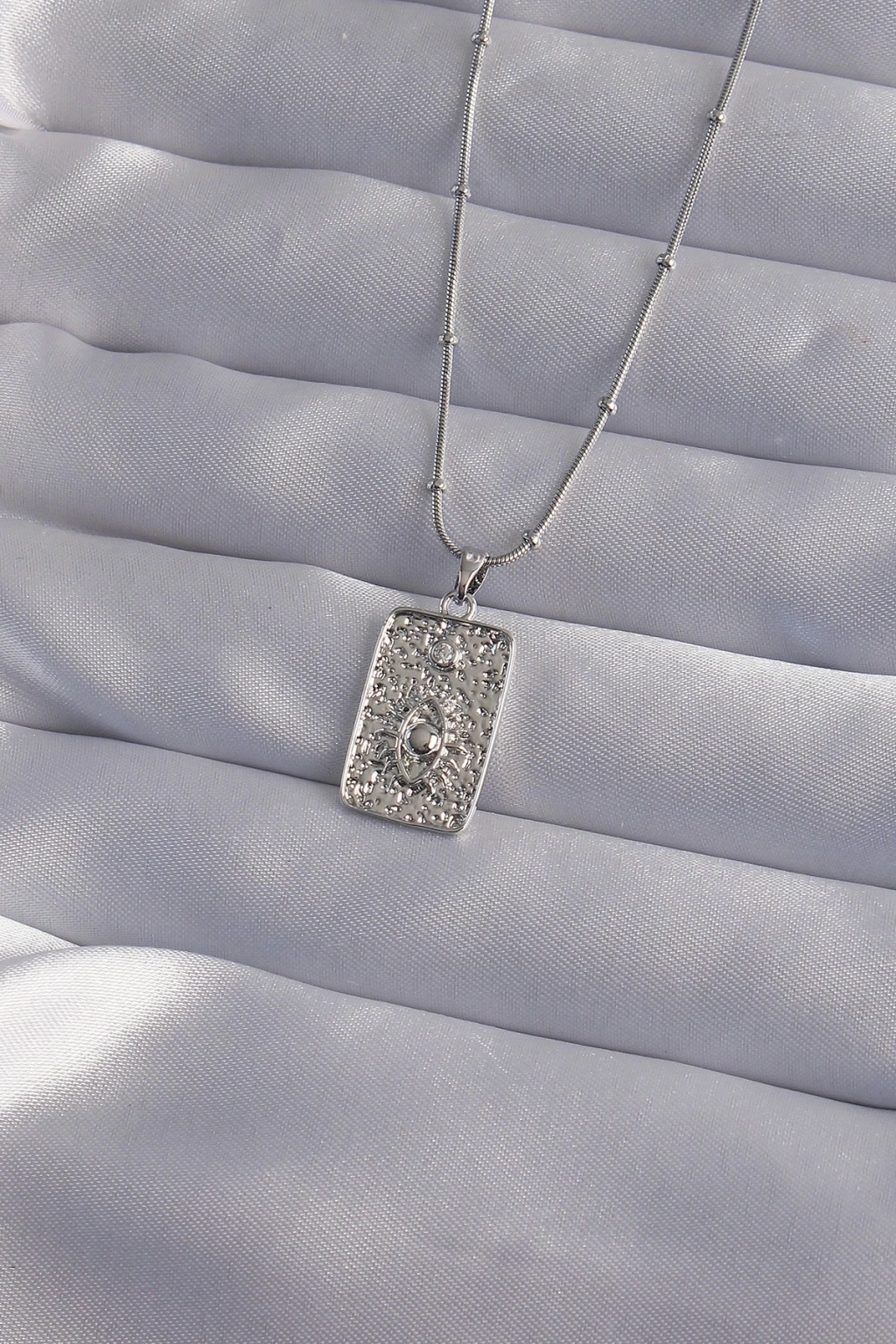 BFS 316L Çelik Zincir Gümüş Renk Lazer İşlemeli Göz Figür Tarot Kolye