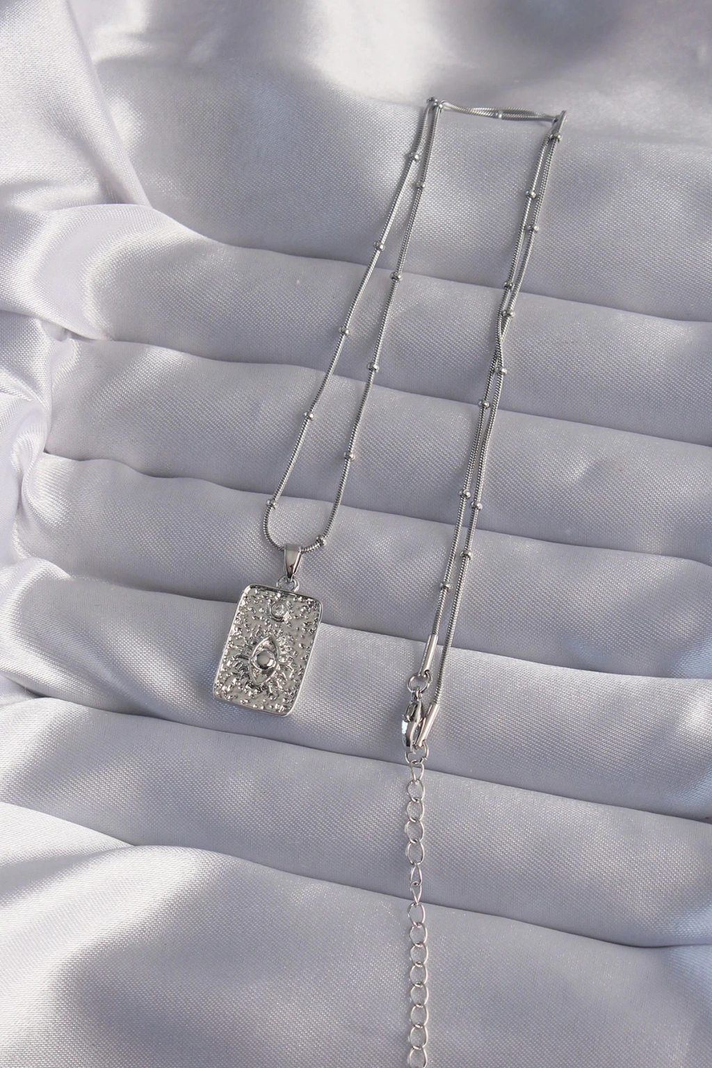 BFS 316L Çelik Zincir Gümüş Renk Lazer İşlemeli Göz Figür Tarot Kolye