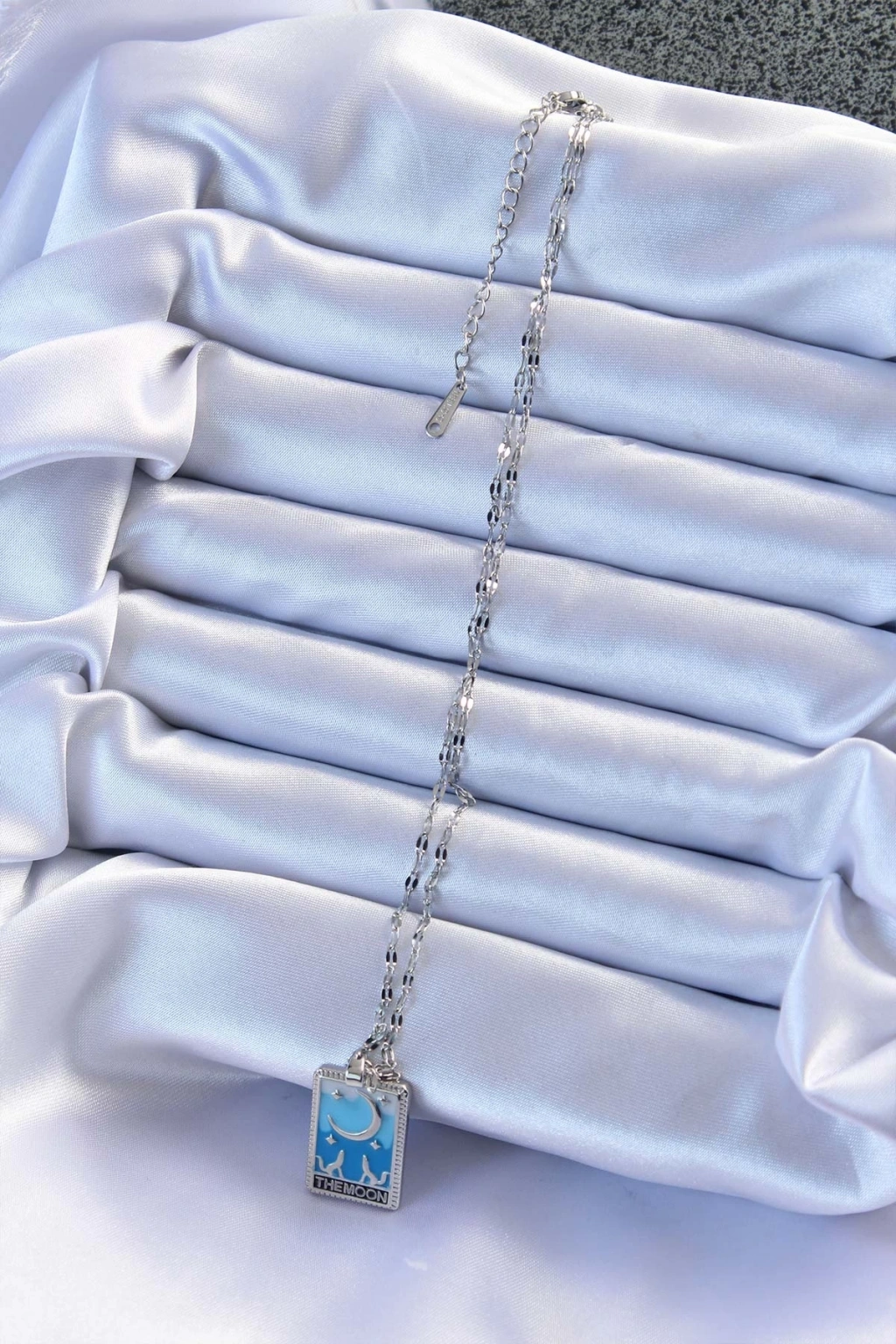 BFS 316L Çelik Zincir Gümüş Renk Mavi Mineli Ay Figür Tarot Kolye