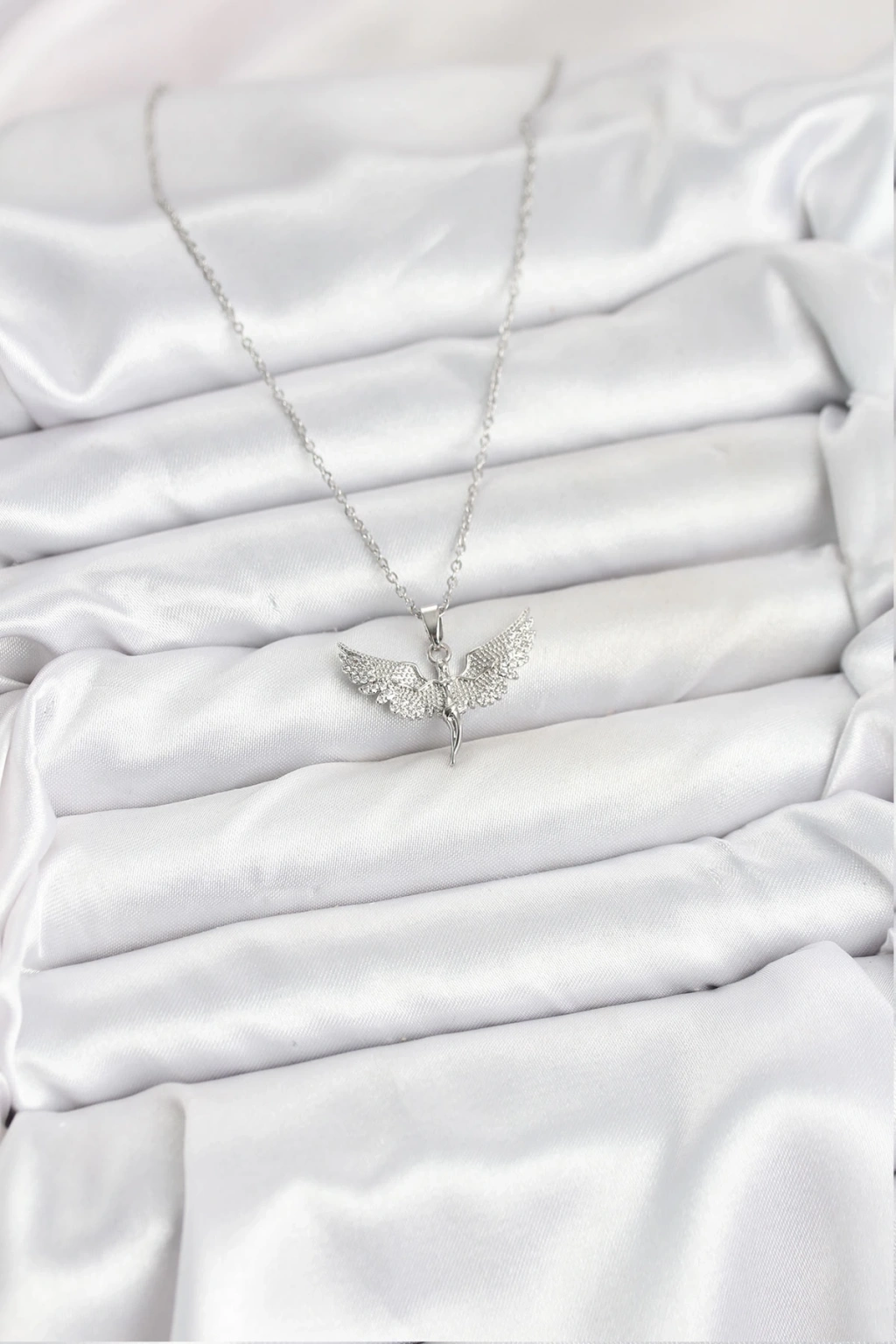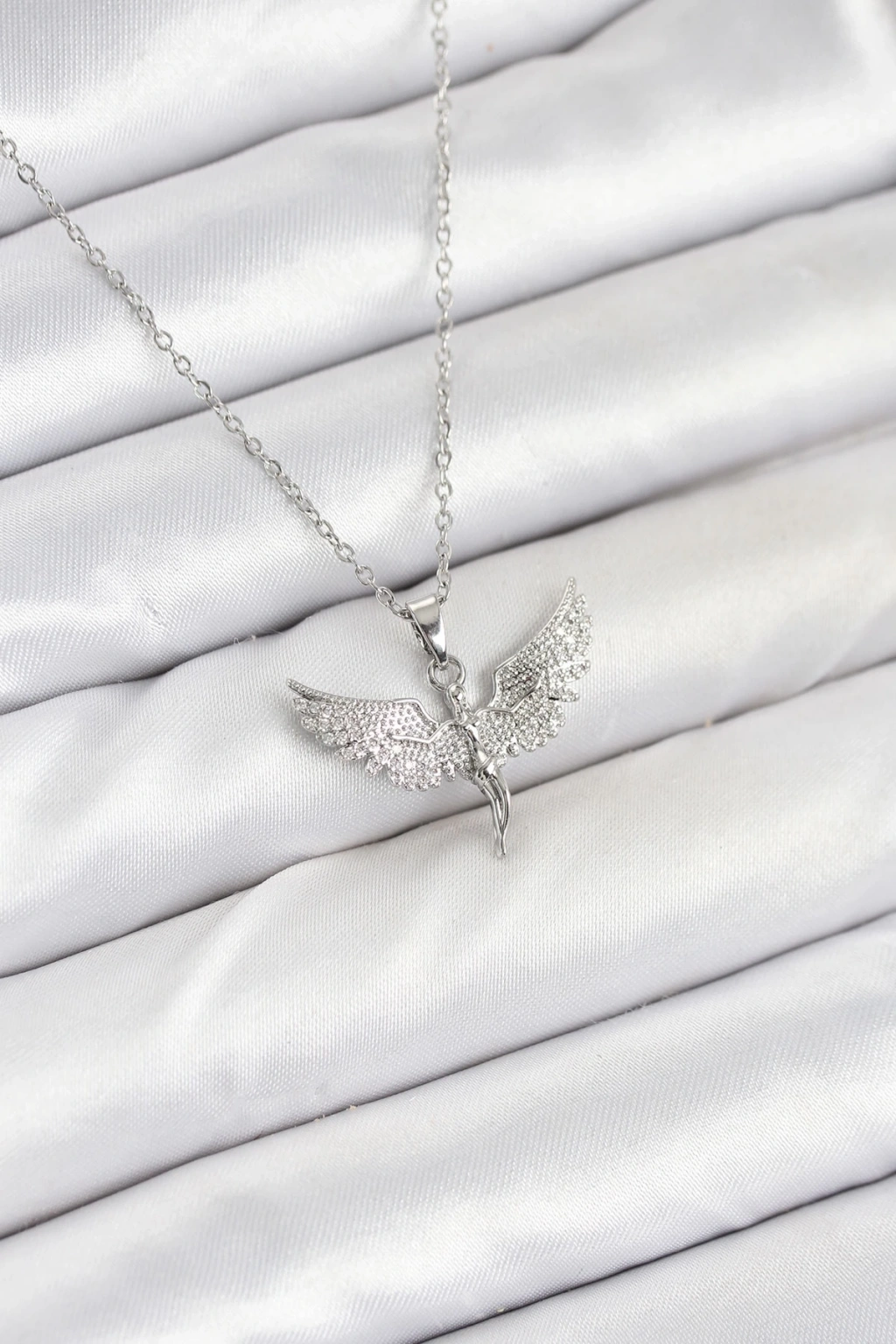 BFS 316L Çelik Zincir Gümüş Renk Melek Model Kadın Kolye