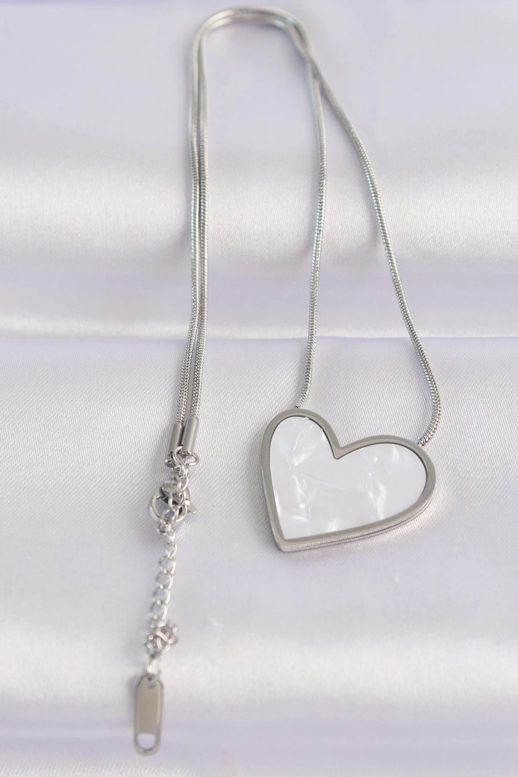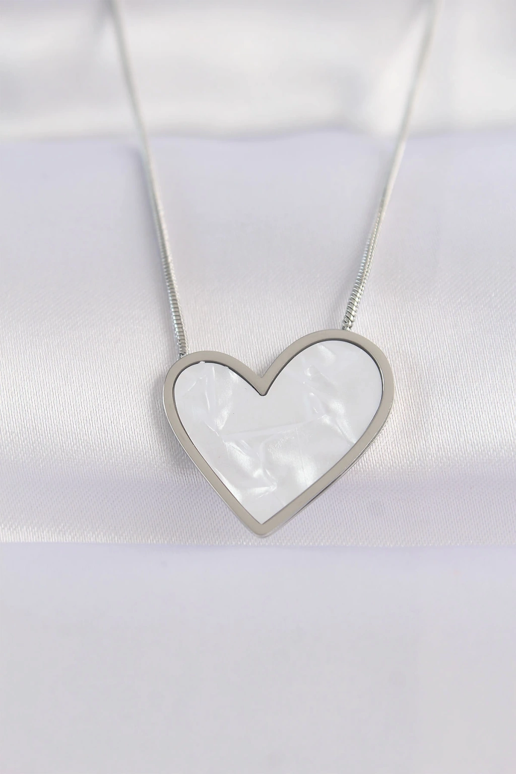 BFS 316L Çelik Zincir Gümüş Renk Mermer Desenli Kalp Kolye
