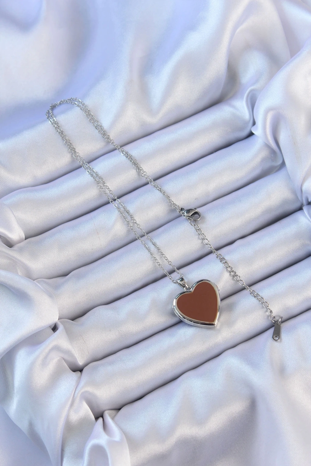 BFS 316L Çelik Zincir Gümüş Renk Mineli İçi Açılan Kalp Kolye