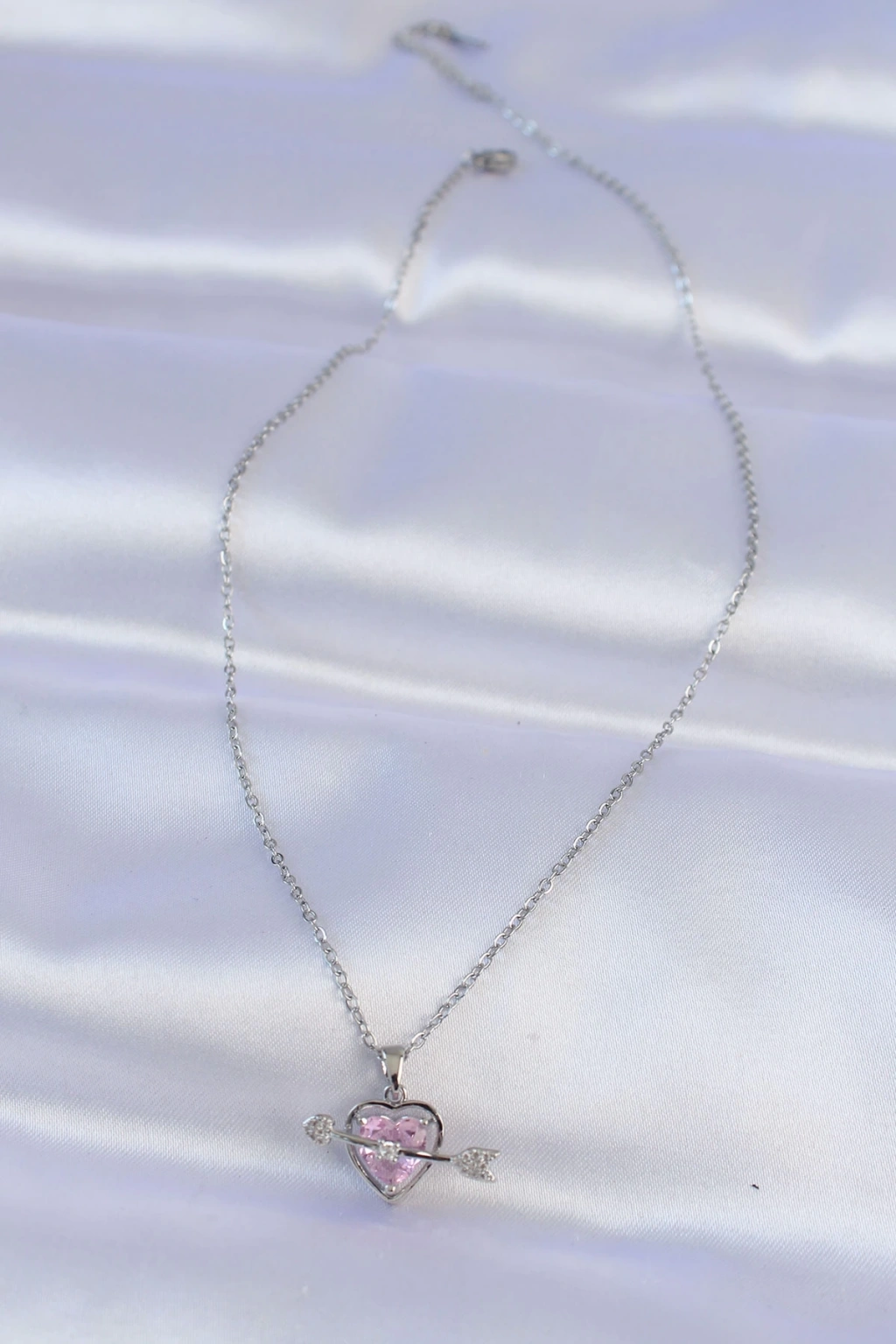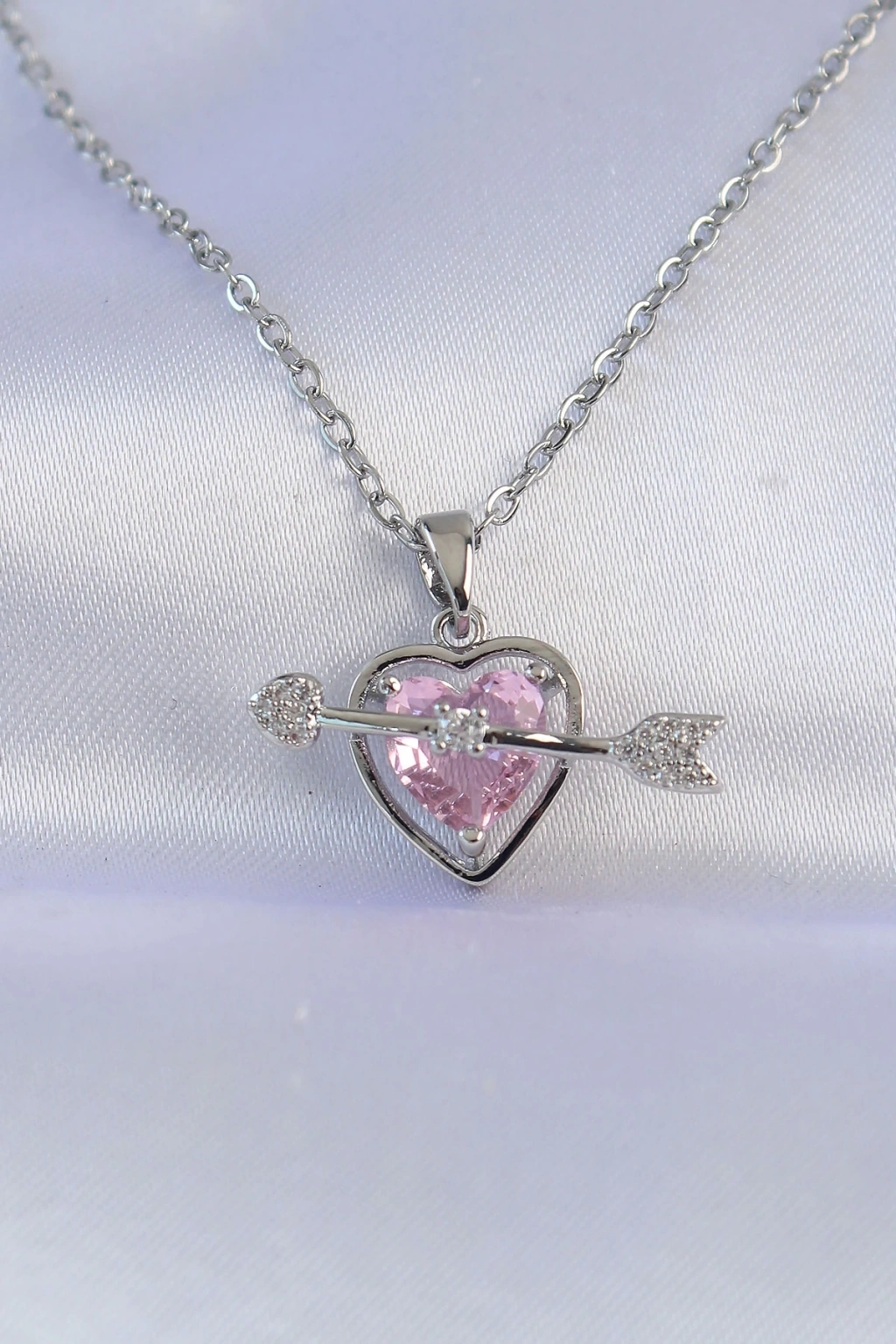 BFS 316L Çelik Zincir Gümüş Renk Pembe Zirkon Taşlı Eros Kolye