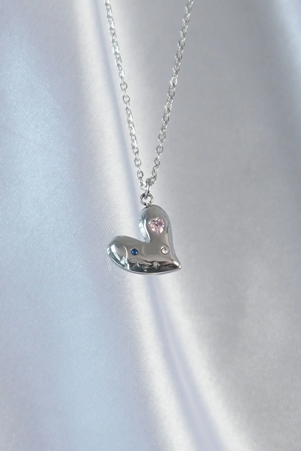 BFS 316L Çelik Zincir Gümüş Renk Renkli Zirkon Taşlı Kalp Kolye