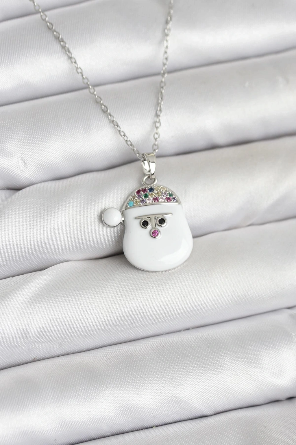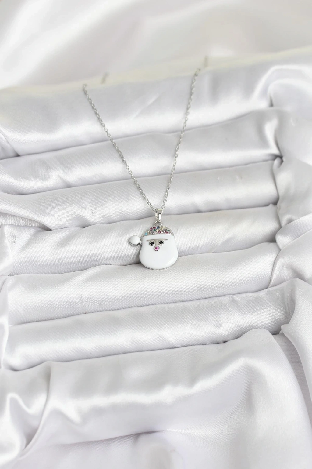 BFS 316L Çelik Zincir Gümüş Renk Şapkalı Kardan Adam Kafası Model Yılbaşı Temalı Kadın Kolye
