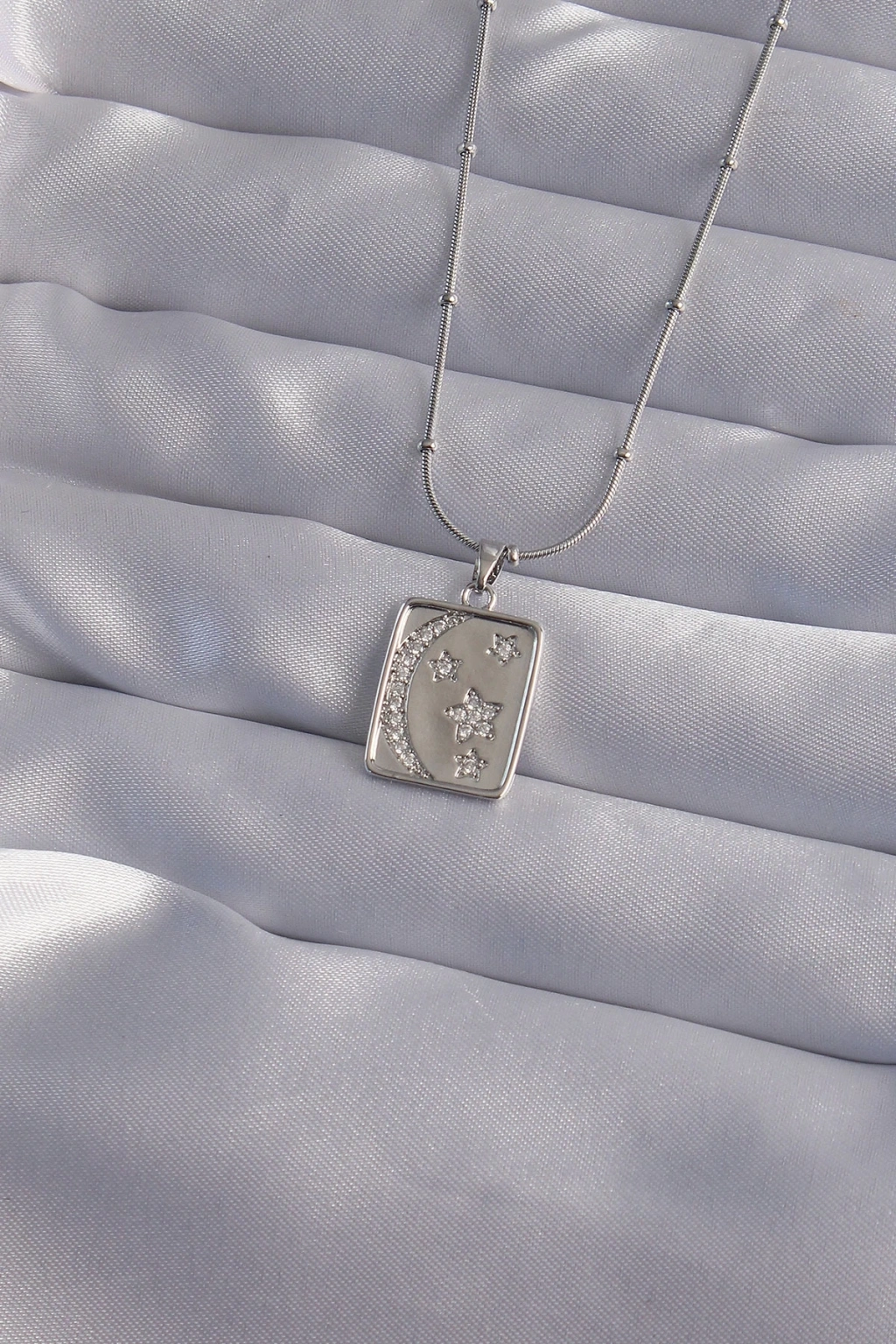 BFS 316L Çelik Zincir Gümüş Renk Zirkon Taşlı Ay Yıldız Figürlü Tarot Kolye