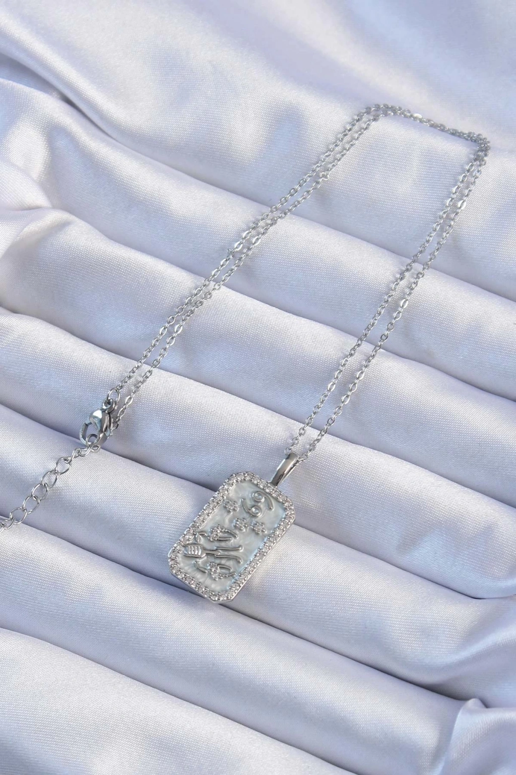 BFS 316L Çelik Zincir Gümüş Renk Zirkon Taşlı Çerçeveli Tarot Kolye