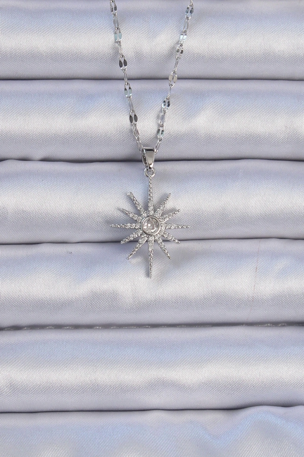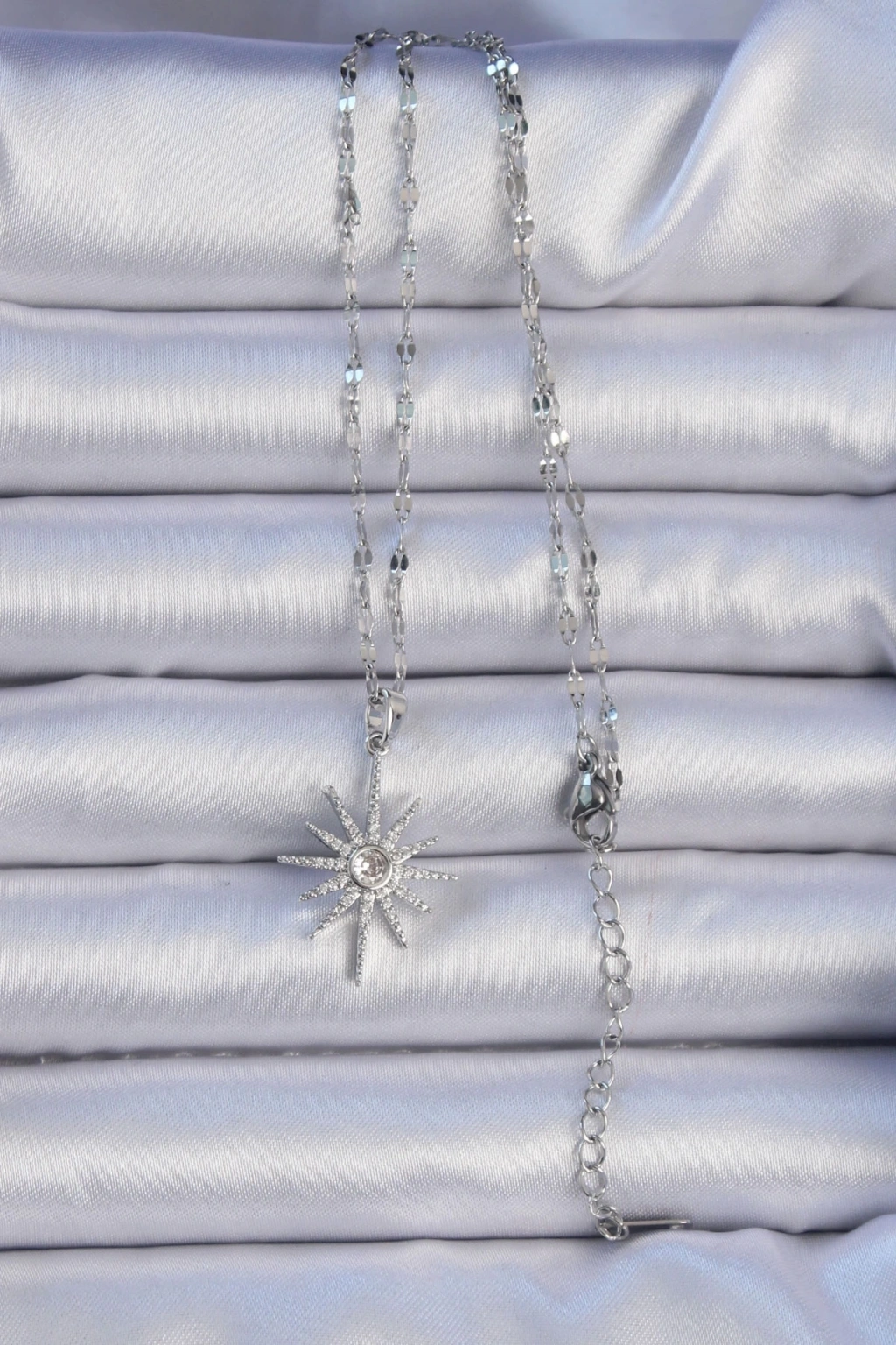 BFS 316L Çelik Zincir Gümüş Renk Zirkon Taşlı Kutup Yıldızı Kolye