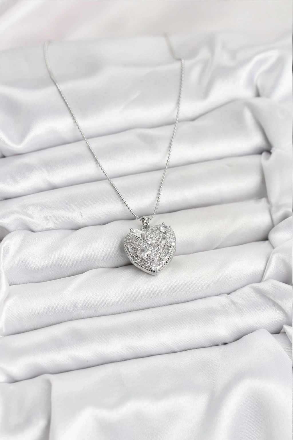 BFS 316L Çelik Zincir Gümüş Zirkon Taşlı Kalpli Kadın Kolye