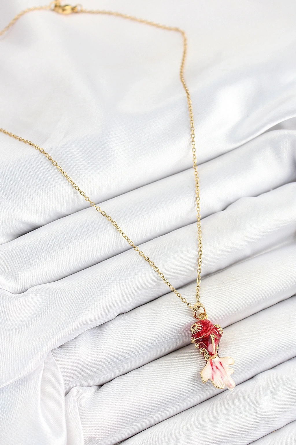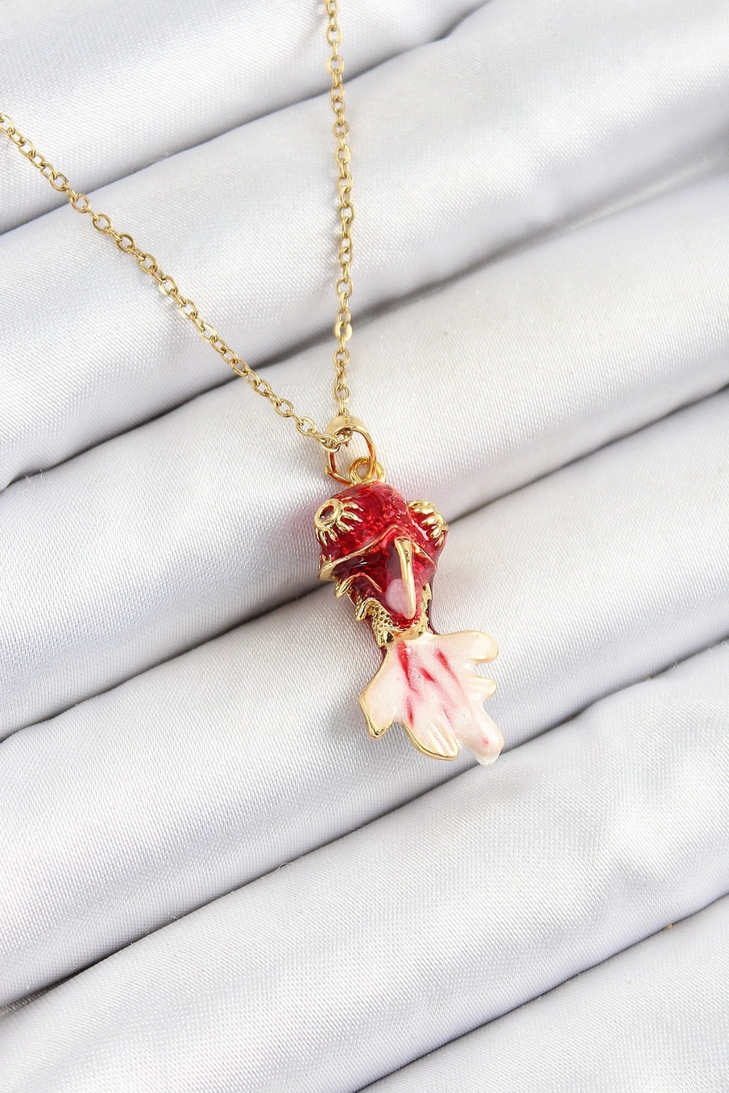 BFS 316L Çelik Zincir Kırmızı Balık Model Gold Renk Kadın Kolye