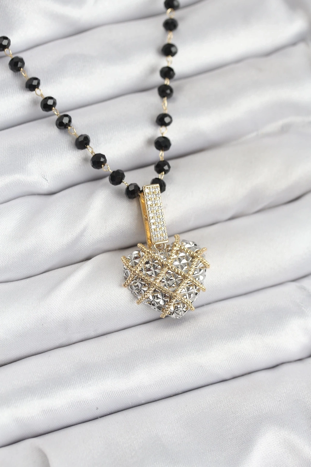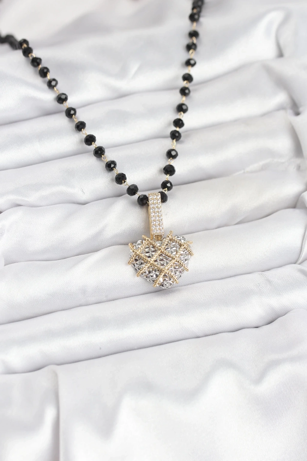 BFS 316L Çelik Zincir Kristal Boncuklu Kalpli Kadın Kolye
