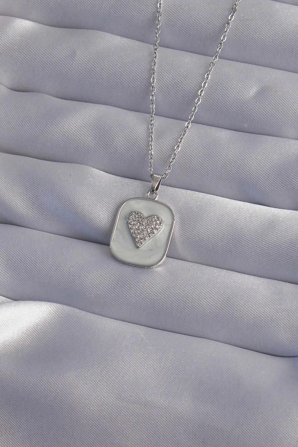 BFS 316L Çelik Zincir Mermer Desenli Gümüş Renk Zirkon Taşlı Kalp Model Kolye