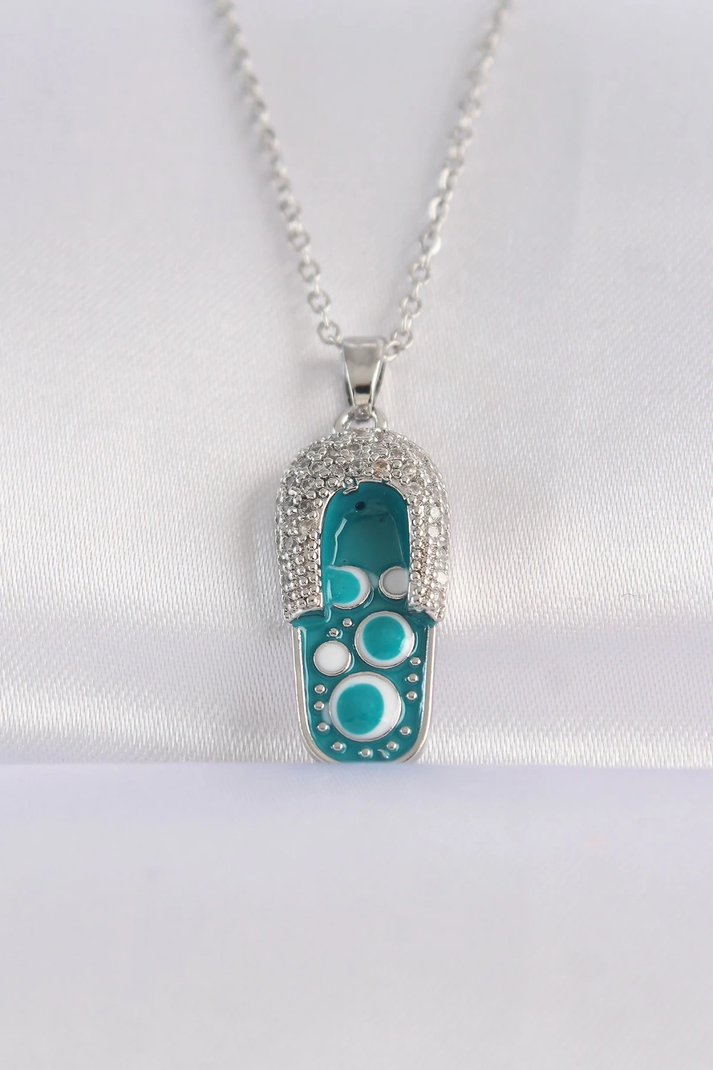 BFS 316L Çelik Zincir Zirkon Taşlı Gümüş Renk Nazarlı Terlik Tasarımlı Kolye