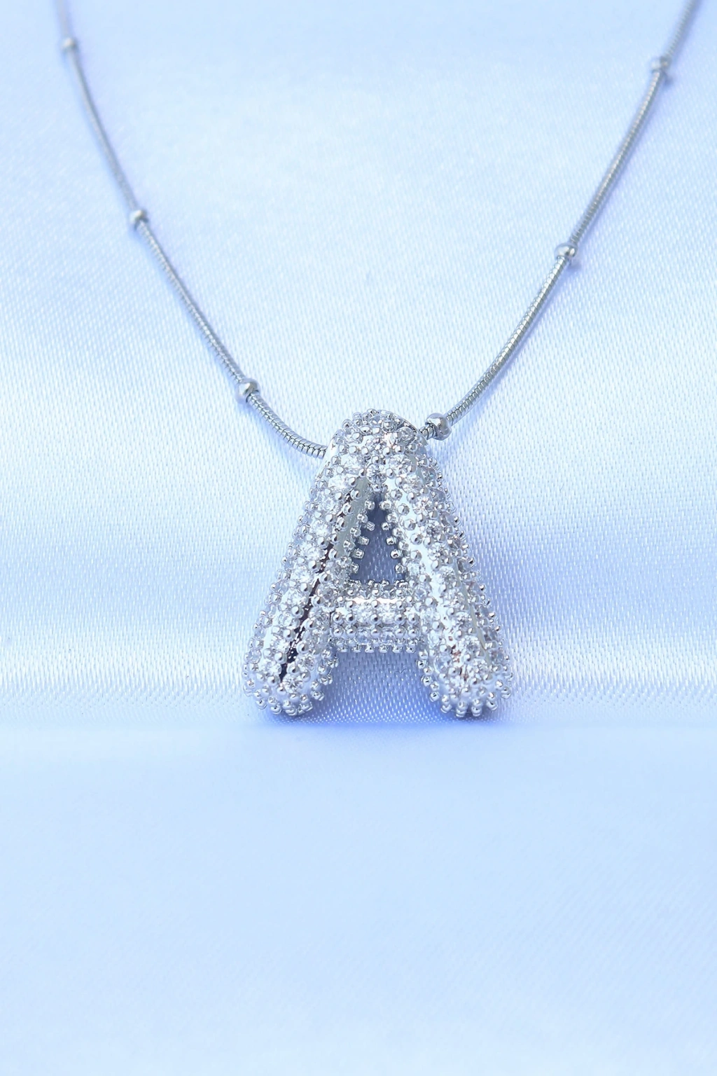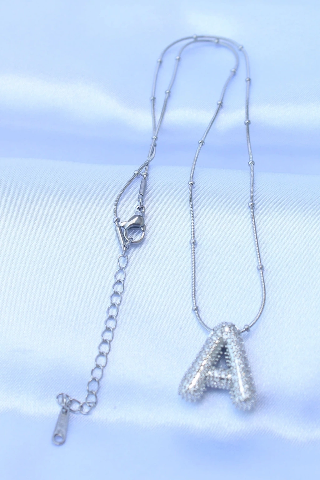 BFS 316L Çelik Zincirli Zirkon Taşlı A Harfli Gümüş Renk Bubble Kolye