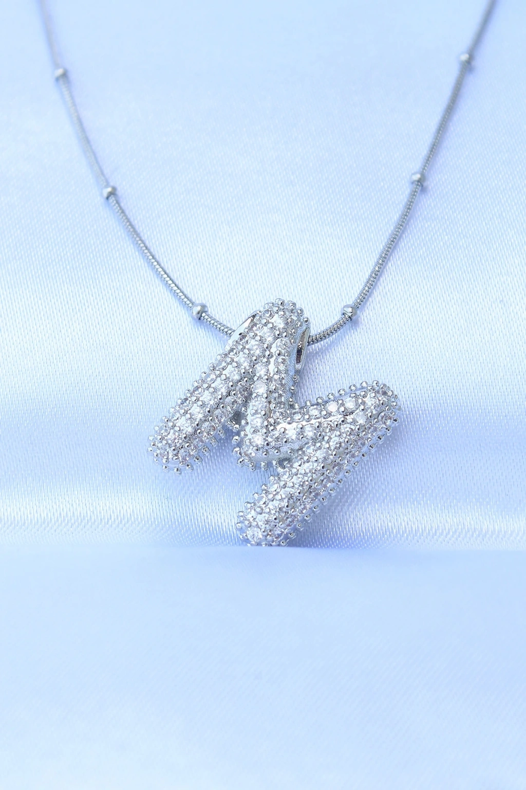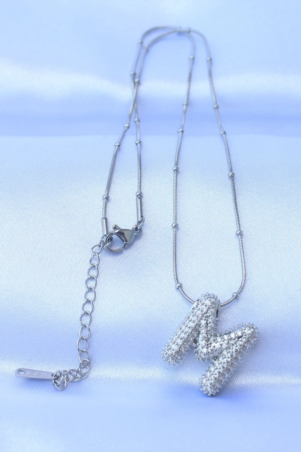 BFS 316L Çelik Zincirli Zirkon Taşlı M Harfli Gümüş Renk Bubble Kolye