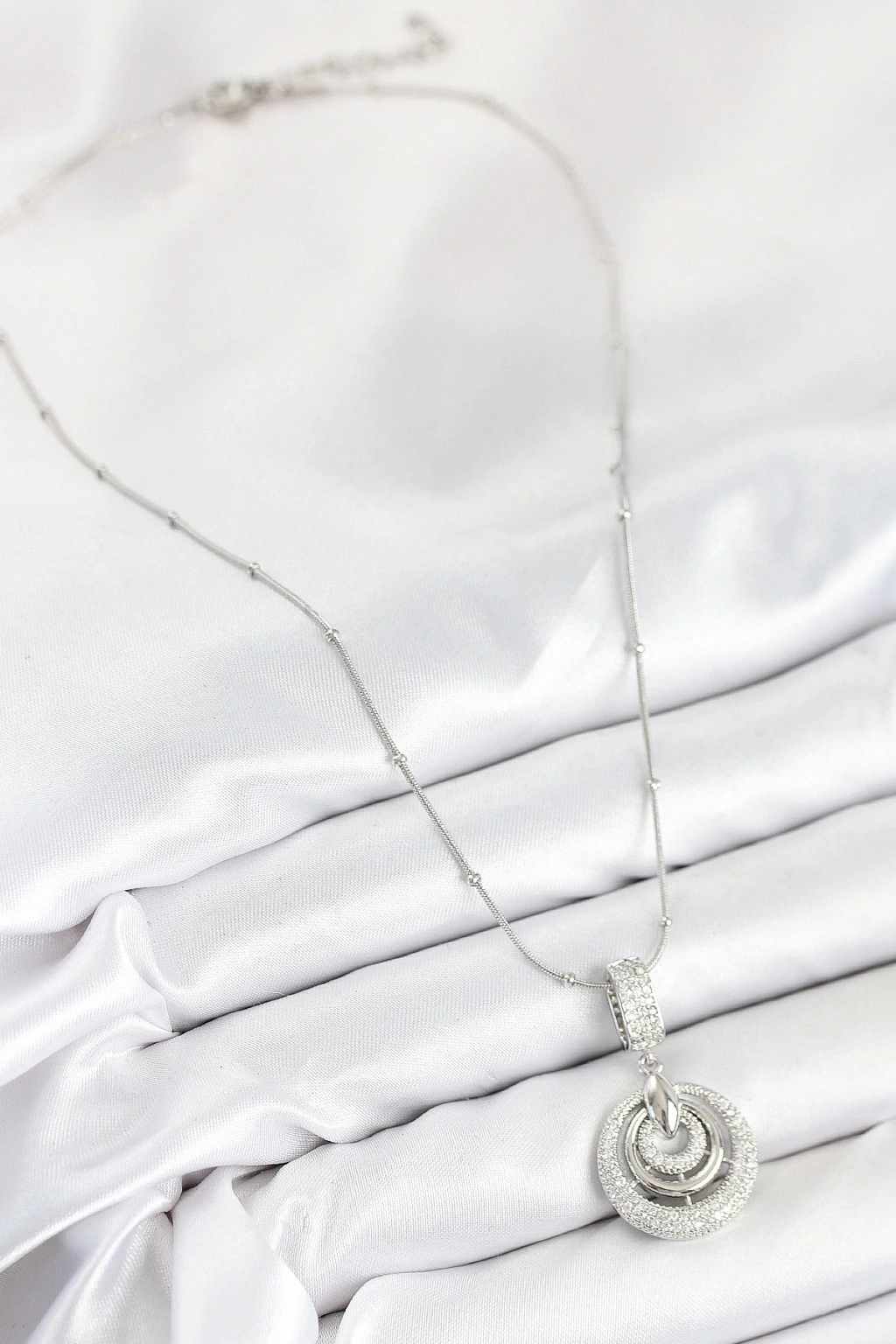 BFS 316L Çelik Zirkon Taşlı Çember Model Gümüş Renk Kadın Kolye