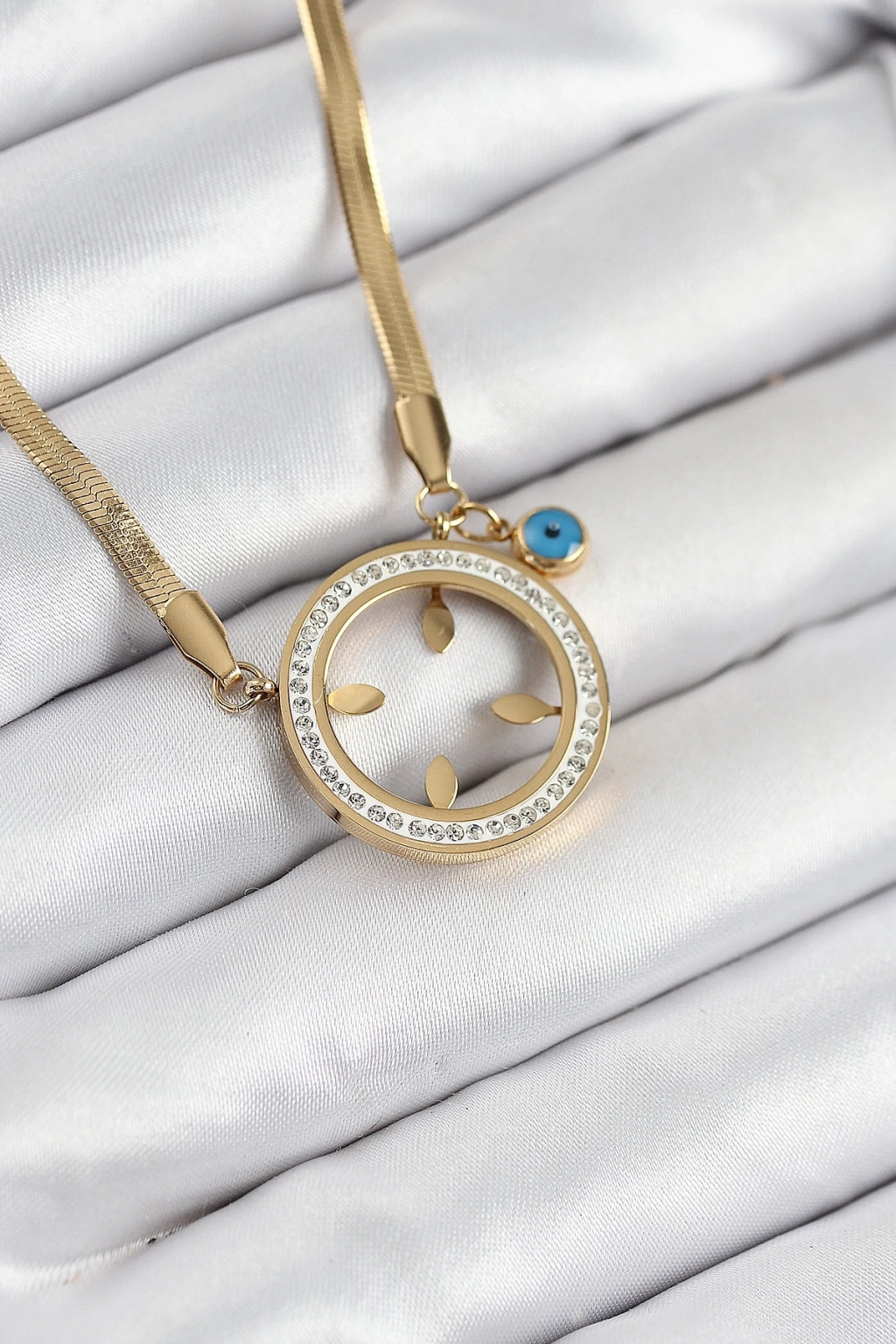 BFS 316L Çelik Zirkon Taşlı Çeyrek Takılabilir Gold Renk Kadın Kolye