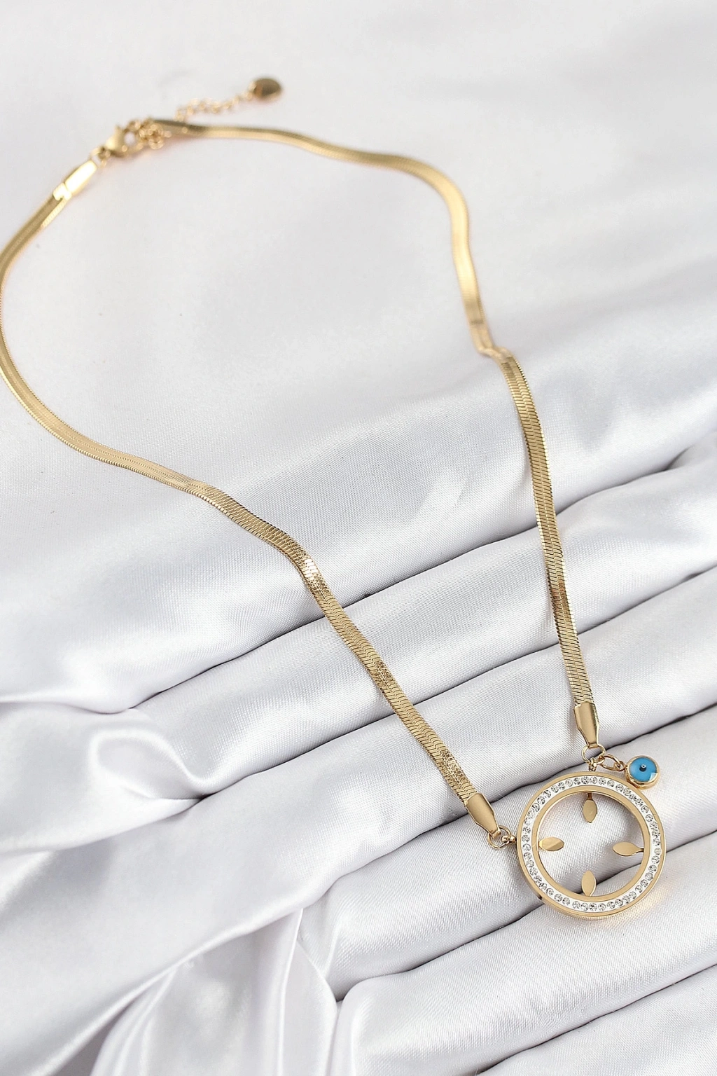 BFS 316L Çelik Zincir Gold Zirkon Taşlı Yılbaşı Tema Kadın Kolye