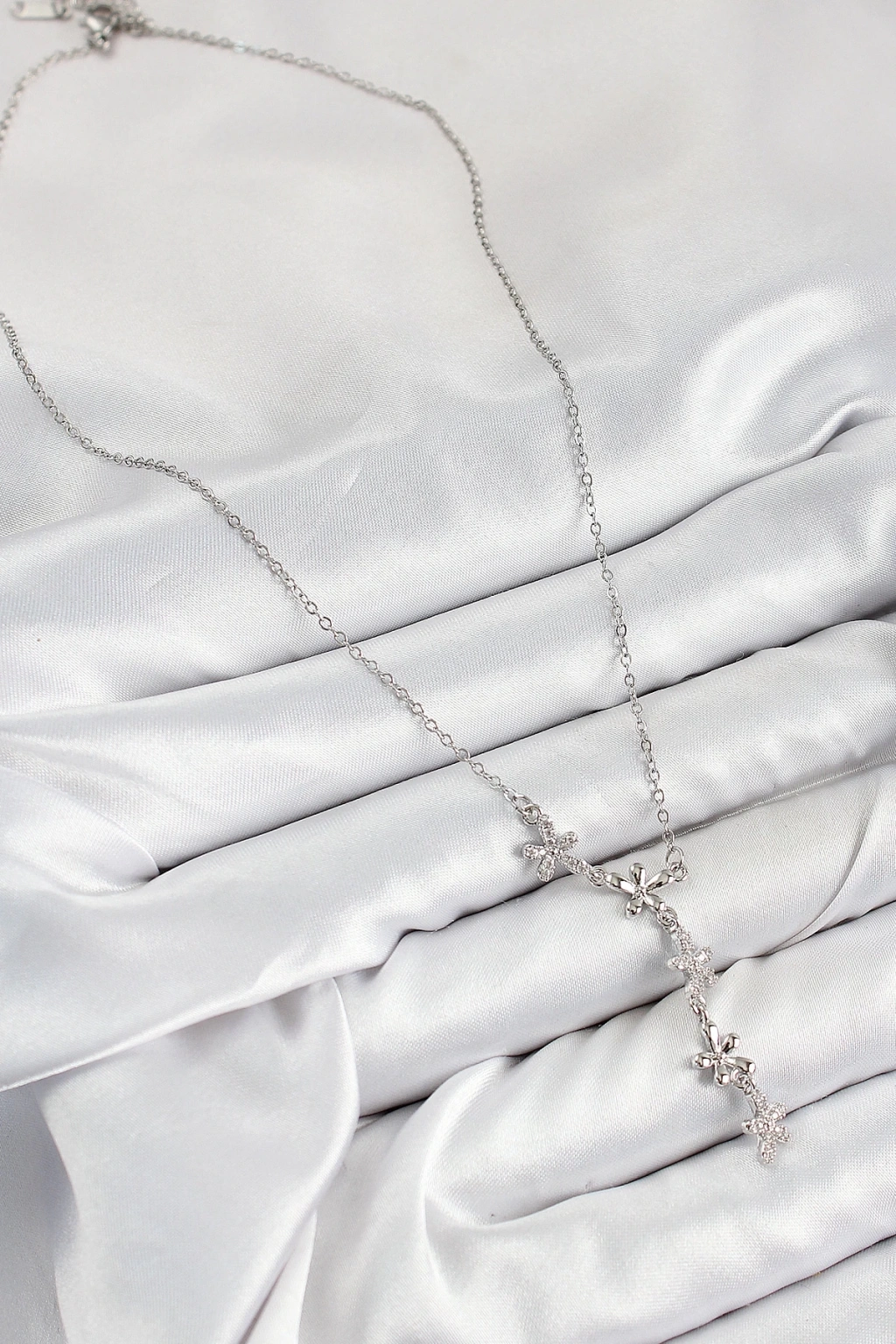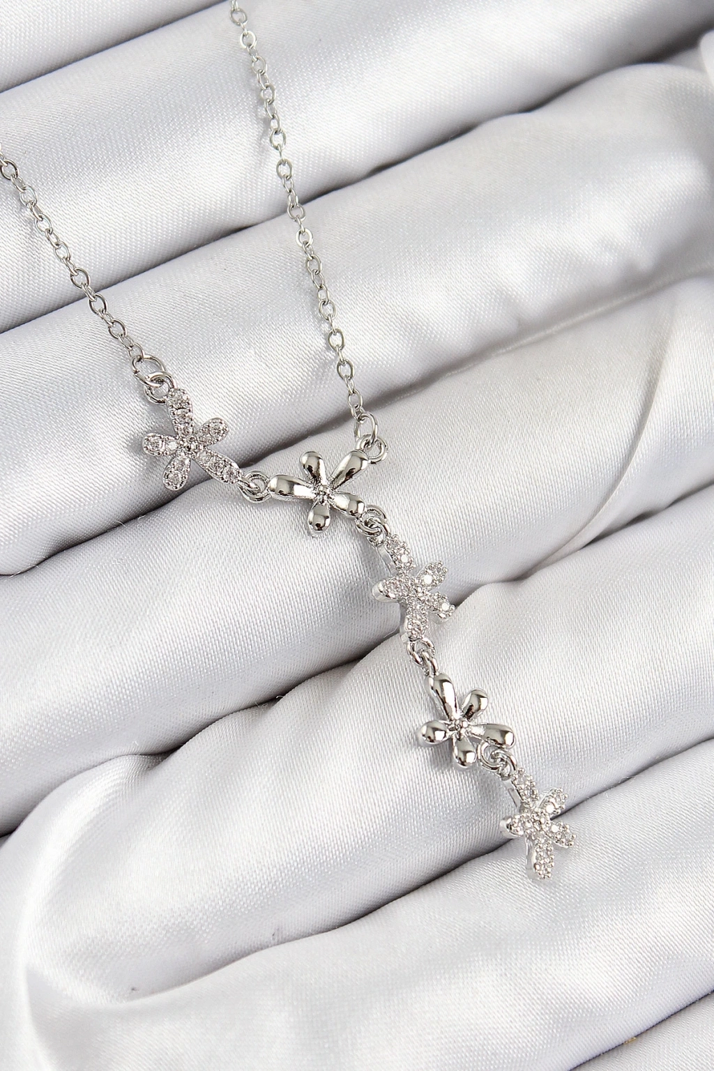BFS 316L Çelik Zirkon Taşlı Çiçek Model Gümüş Renk Kadın Kolye
