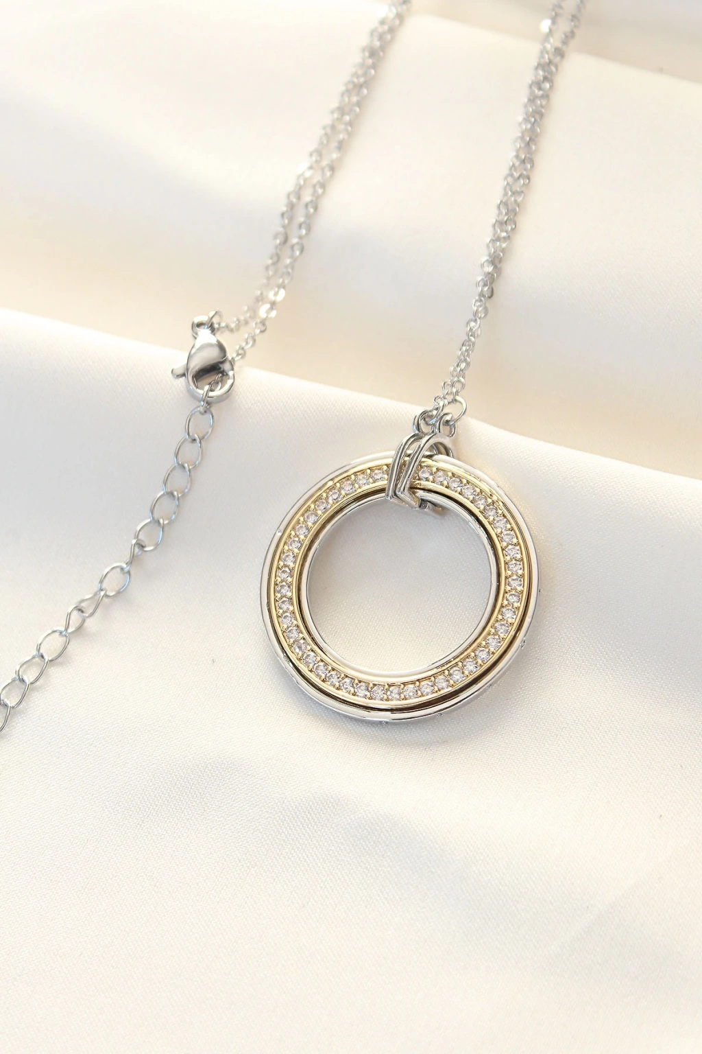 BFS 316L Çelik Zirkon Taşlı Çift Renkli Tifany Kolye