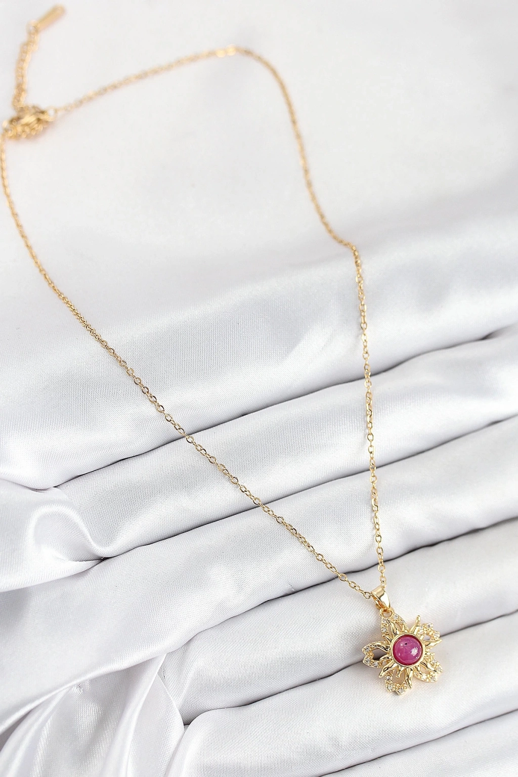 BFS 316L Çelik Zirkon Taşlı Döner Güneş Model Gold Renk Kadın Kolye