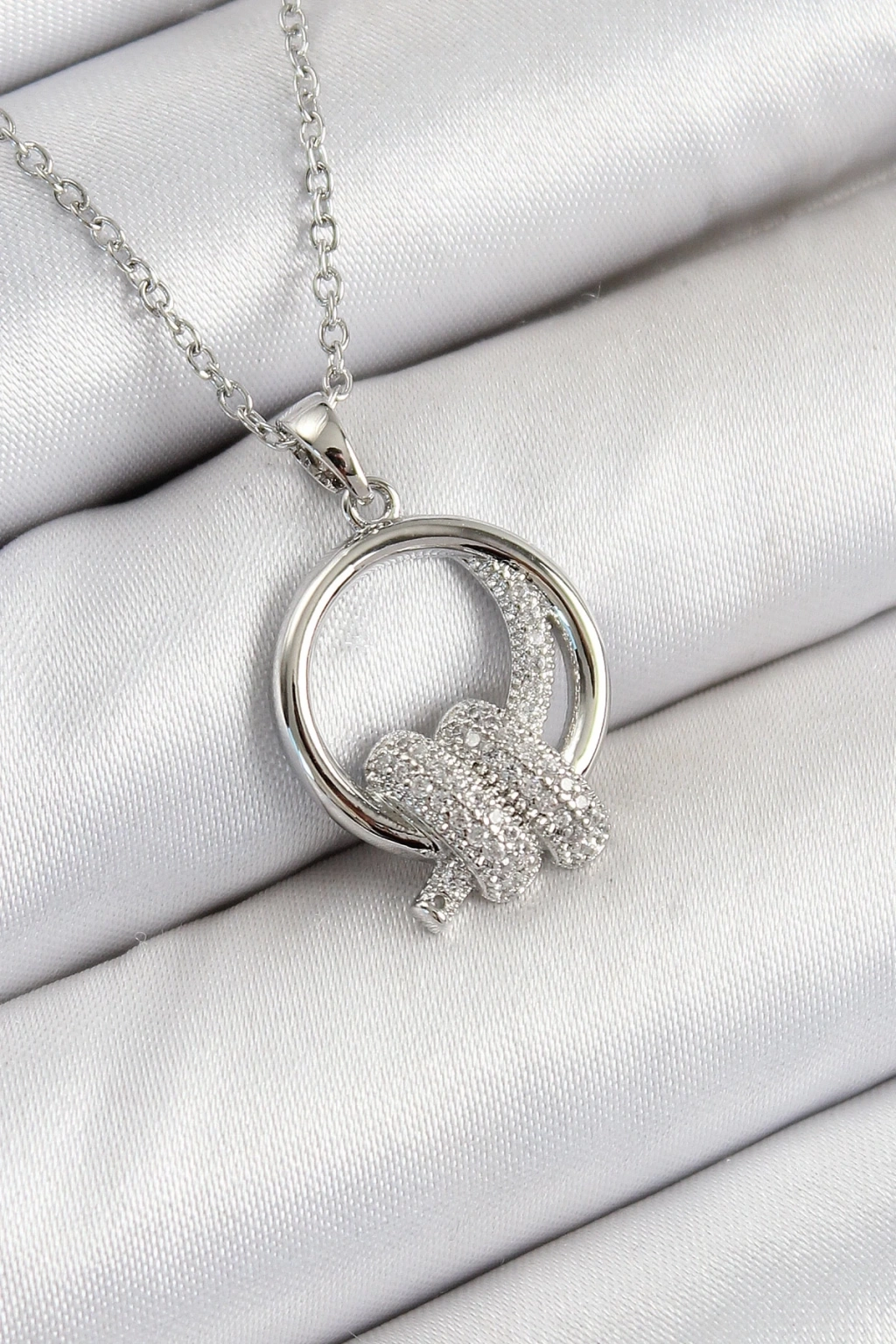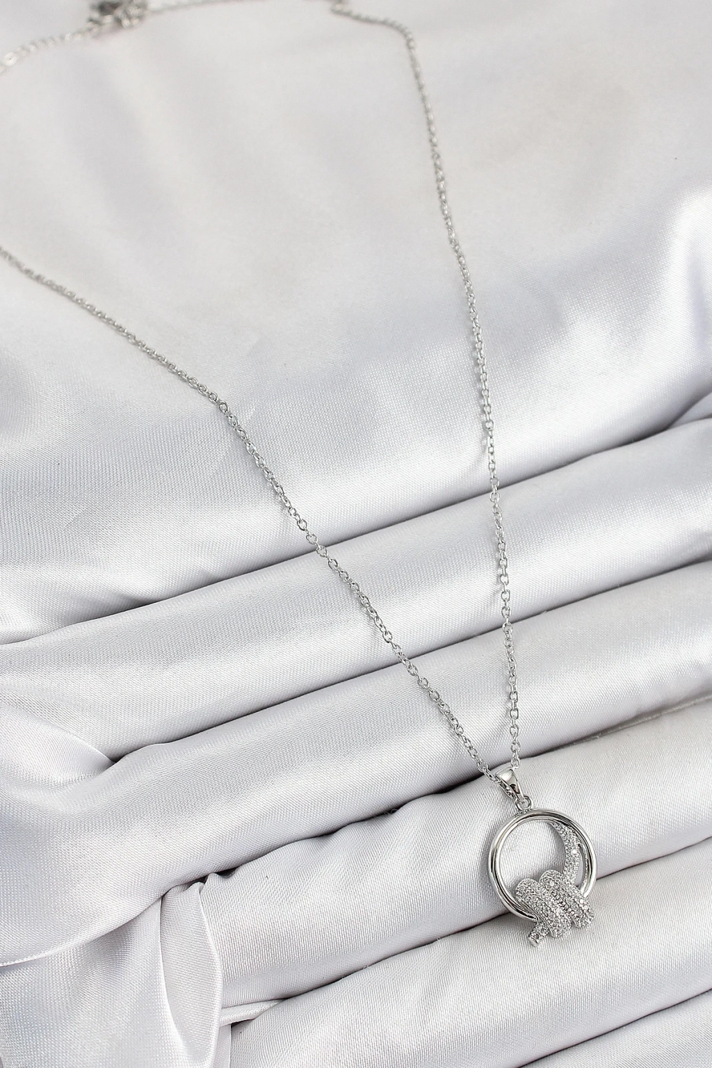 BFS 316L Çelik Zirkon Taşlı Düğüm Model Gümüş Renk Kadın Kolye