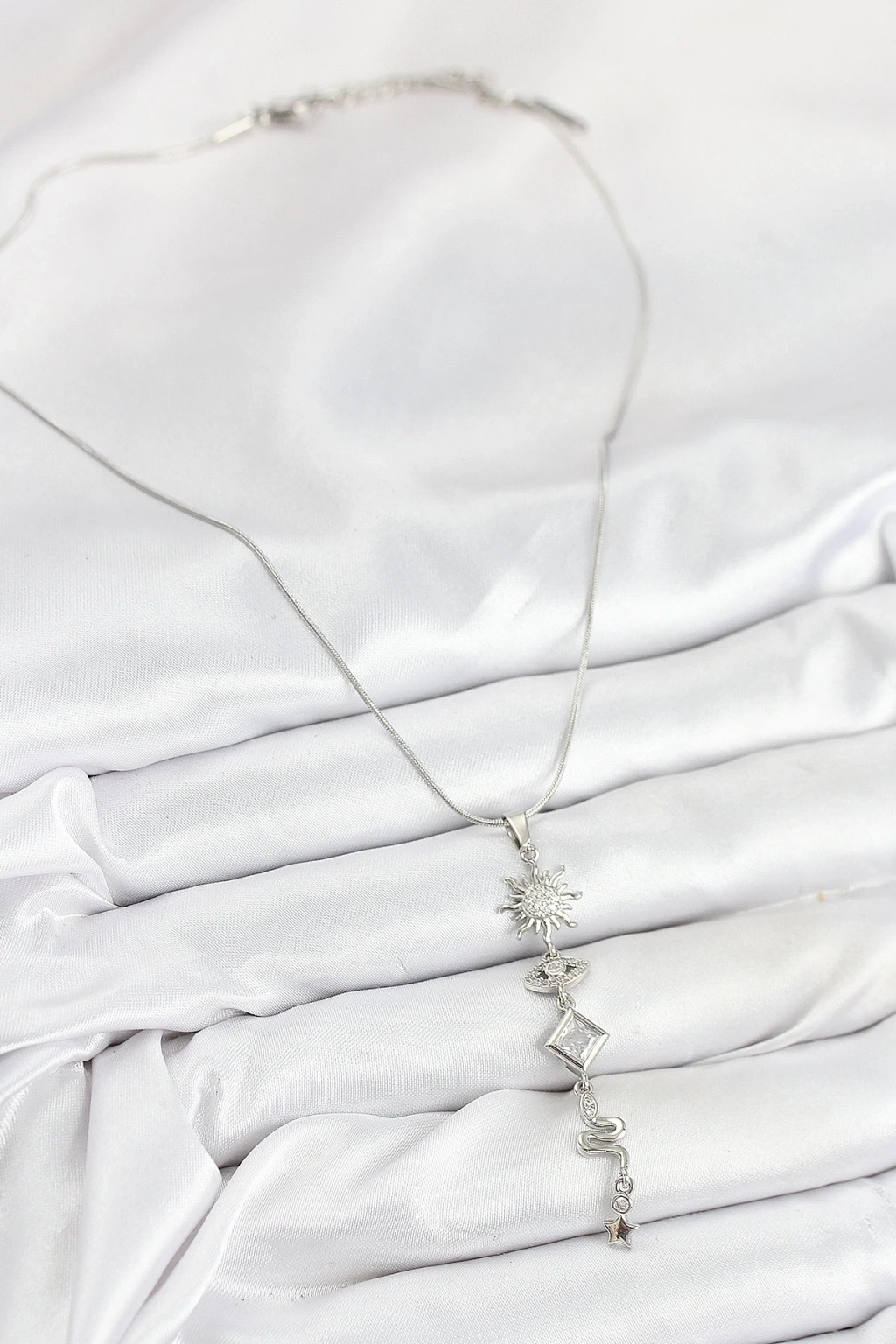 BFS 316L Çelik Zirkon Taşlı Güneş Ve Ay Enerji Model Gümüş Renk Kadın Kolye