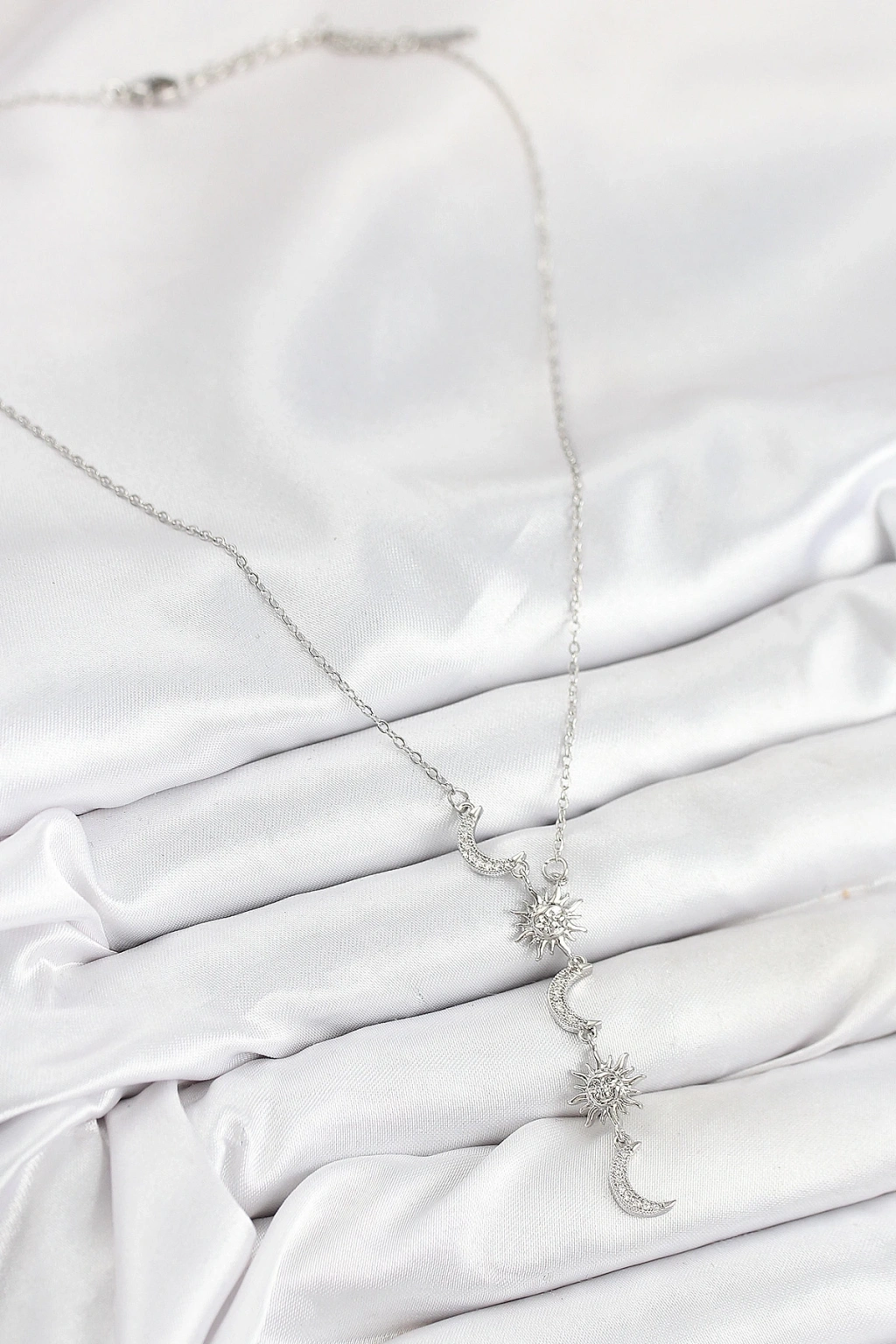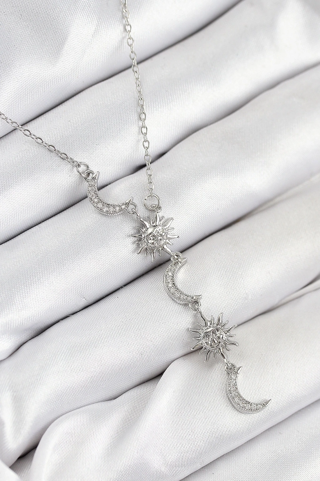 BFS 316L Çelik Zirkon Taşlı Güneş Ve Ay Model Gümüş Renk Kadın Kolye