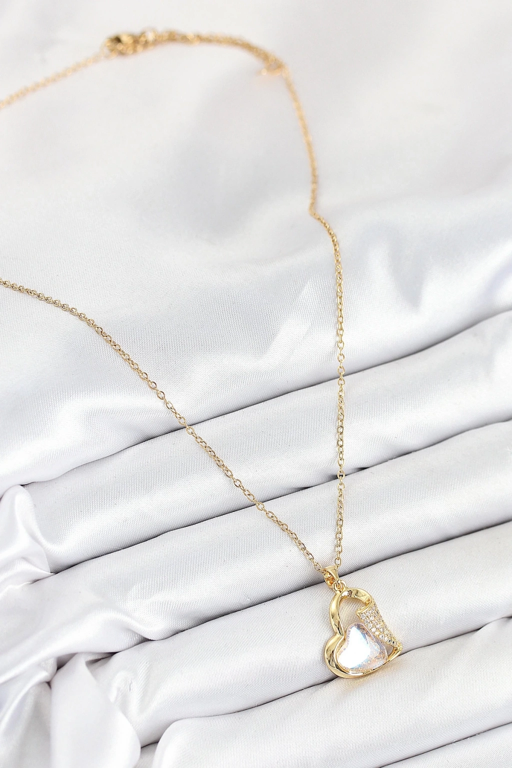 BFS 316L Çelik Zirkon Taşlı Kalp Model Gold Renk Kadın Kolye