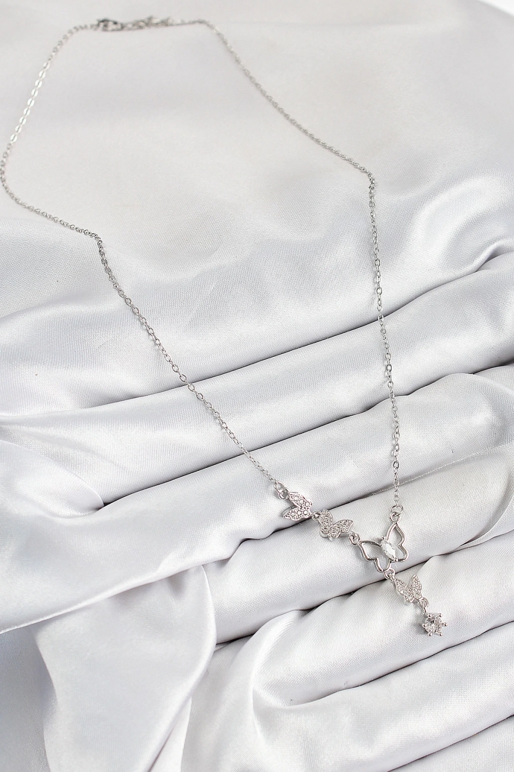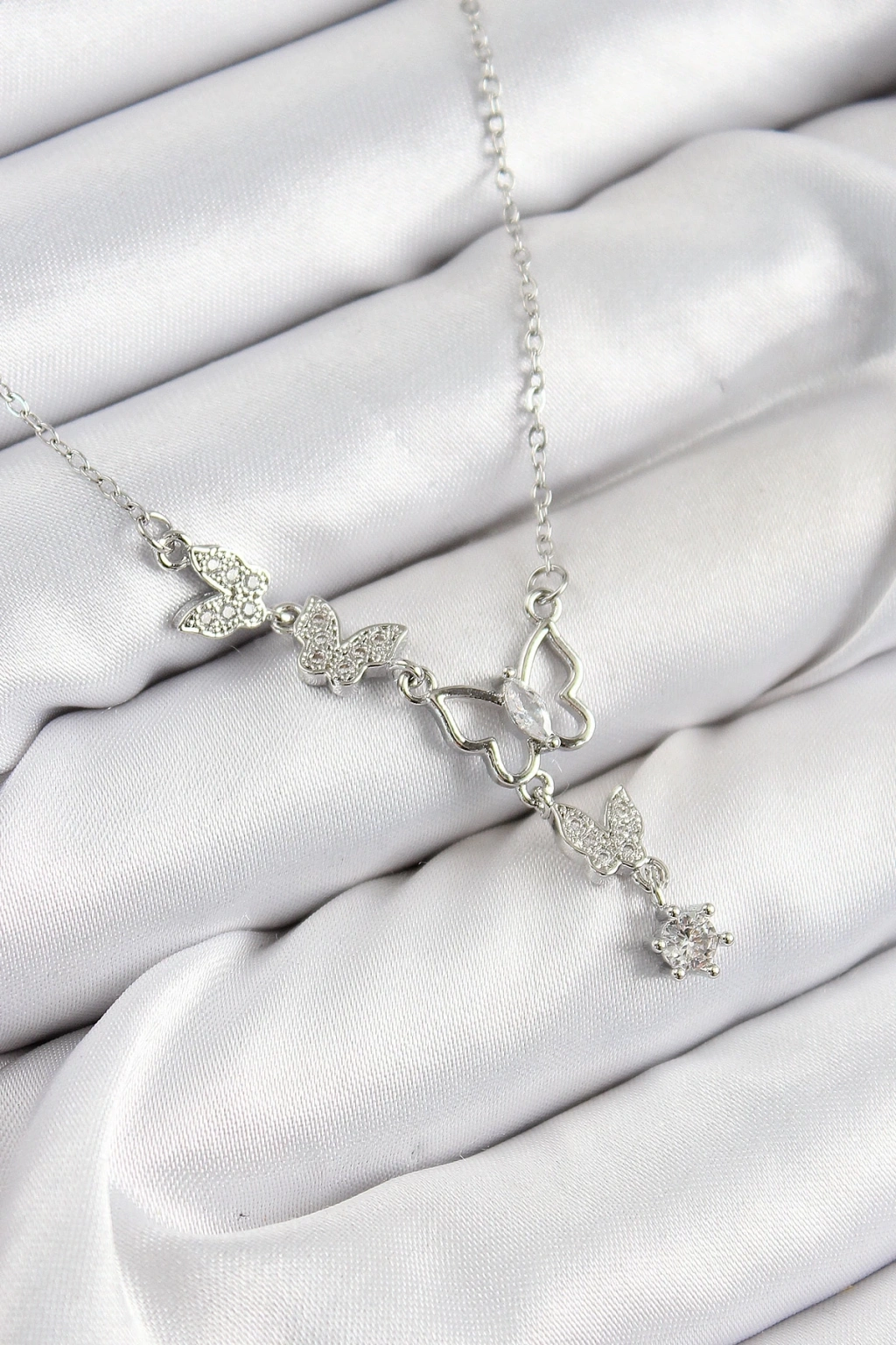 BFS 316L Çelik Zirkon Taşlı Kelebek Model Gümüş Renk Kadın Kolye