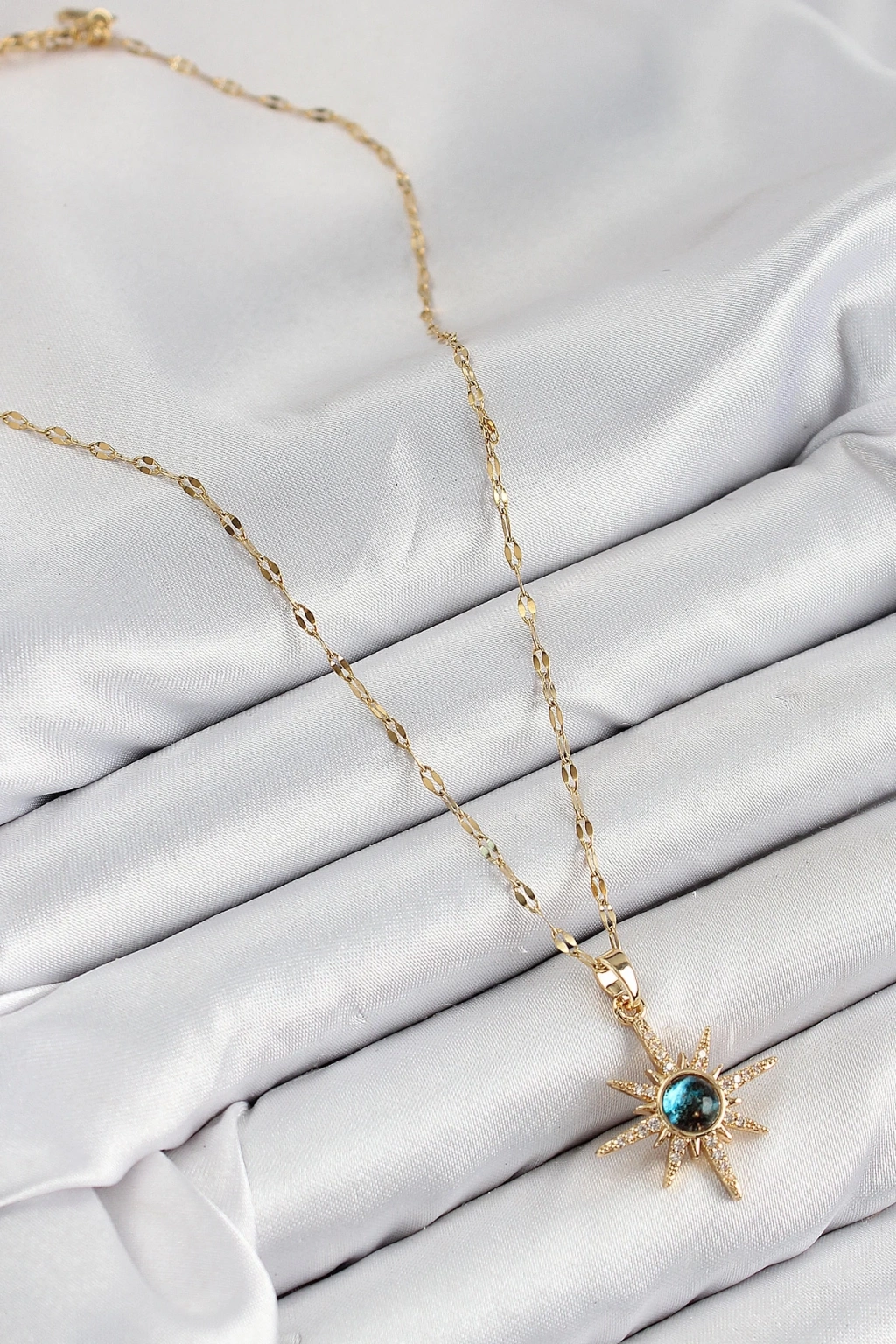 BFS 316L Çelik Zirkon Taşlı Kutup Yıldızı Model Gold Renk Kadın Kolye