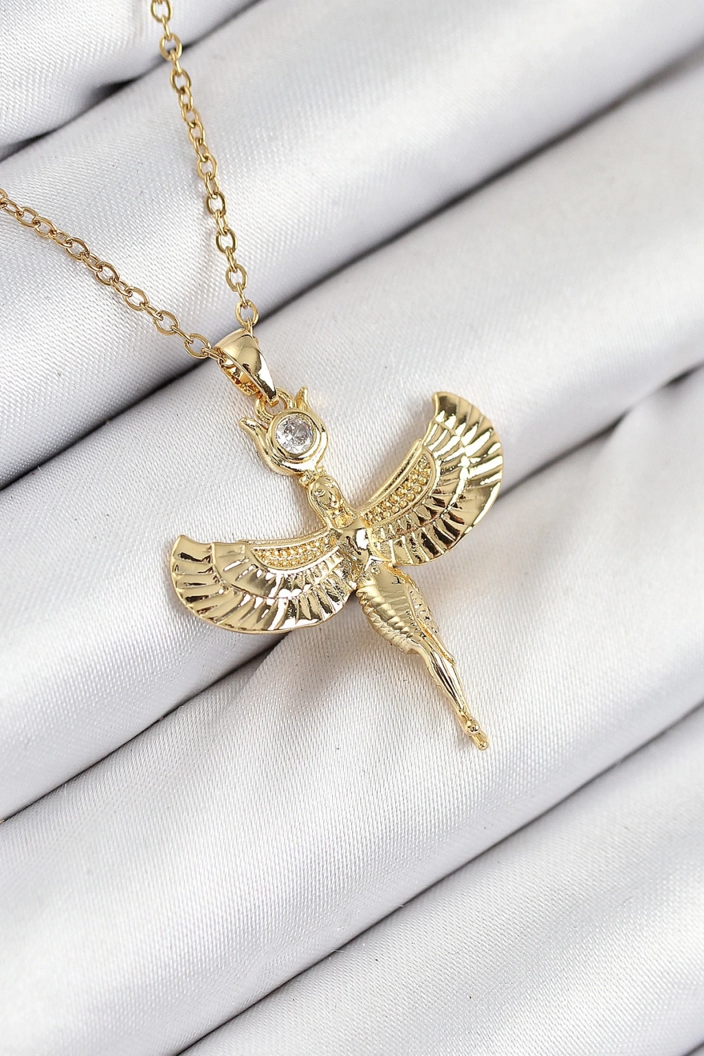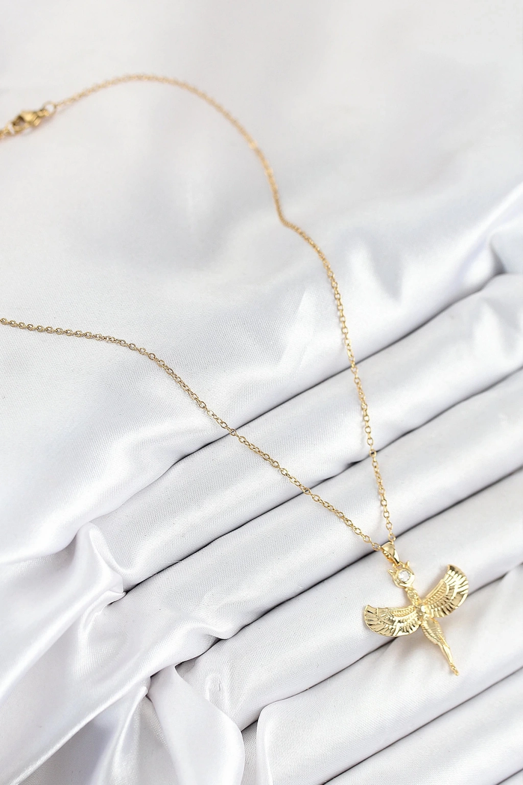 BFS 316L Çelik Zirkon Taşlı Melek Model Gold Renk Kadın Kolye
