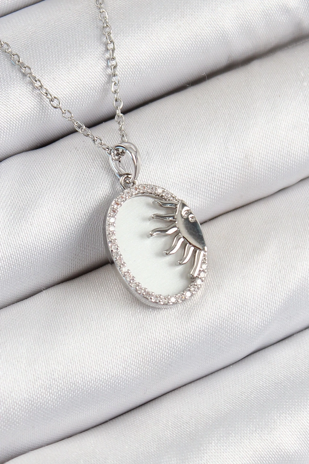 BFS 316L Çelik Zirkon Taşlı Yarım Güneş Model Gümüş Renk Kadın Kolye
