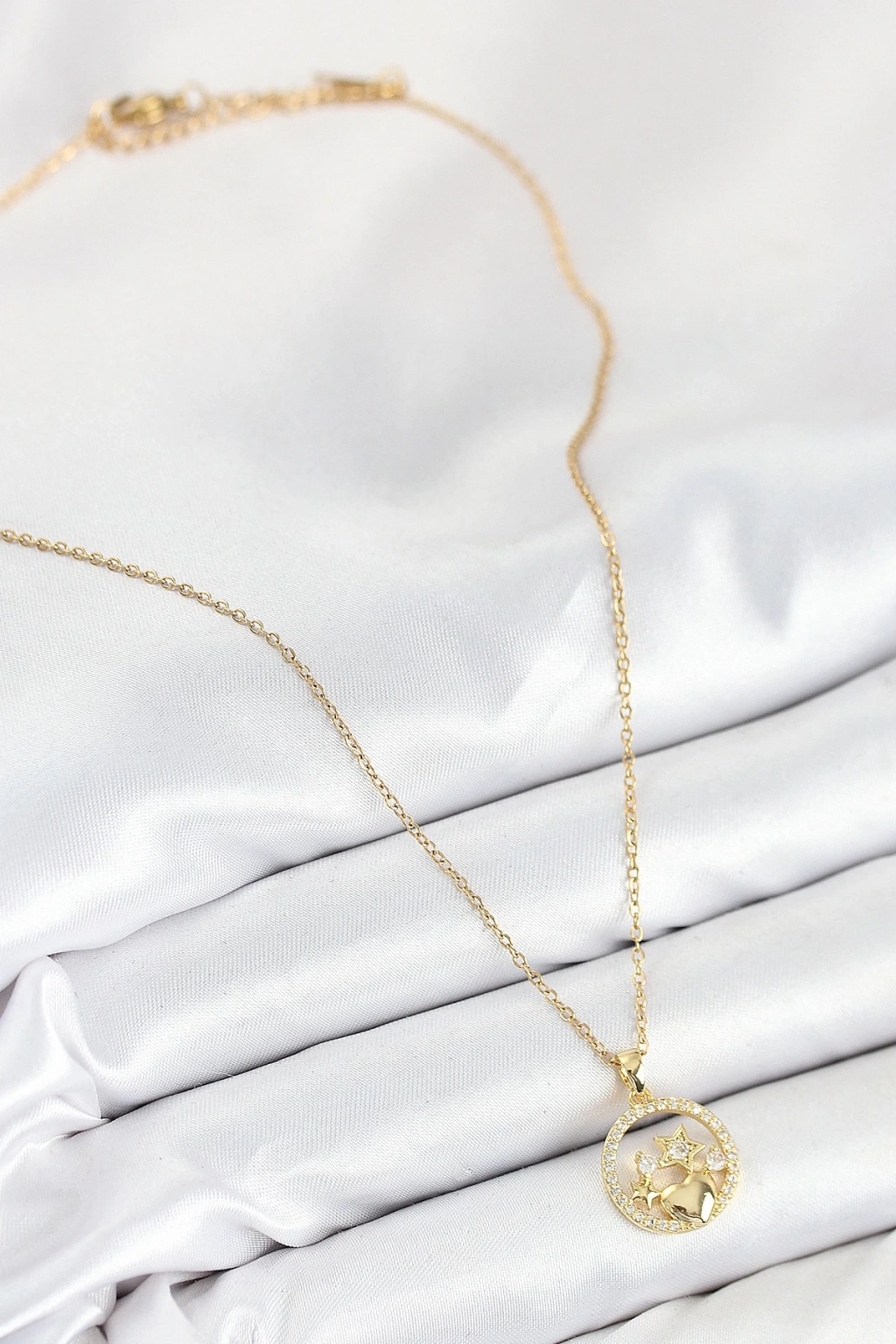 BFS 316L Çelik Zirkon Taşlı Yıldız Ve Kalp Model Gold Renk Kadın Kolye
