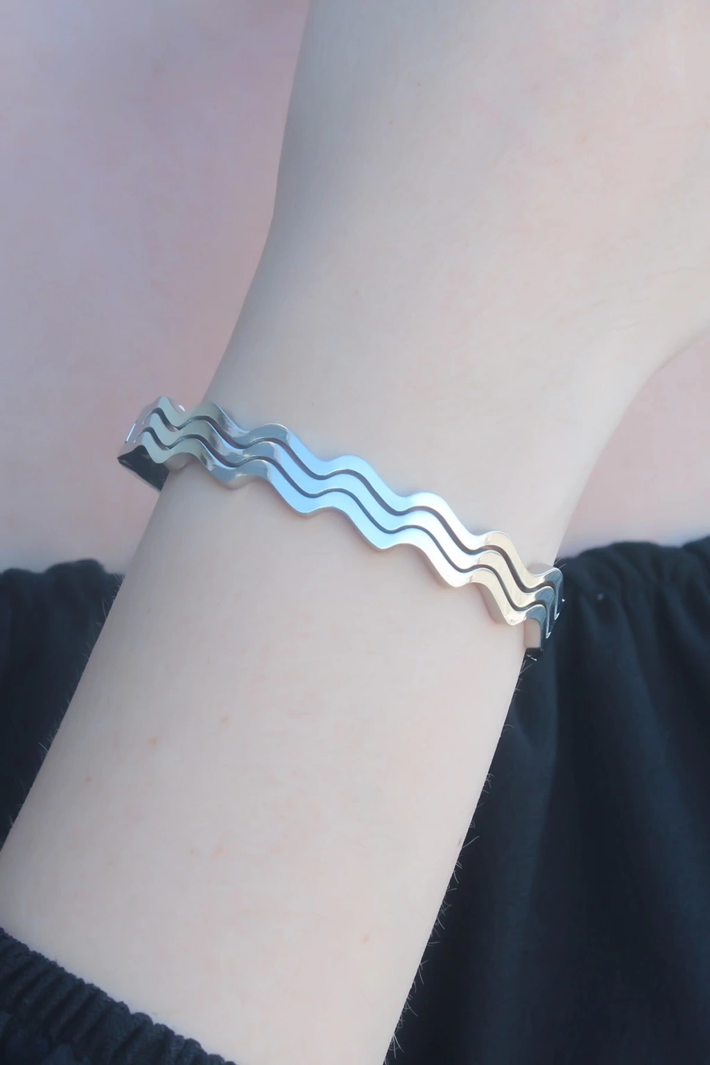 BFS 316L Kararmaz Çelik Gümüş Renk Dalga Model Kelepçe Kadın Bileklik