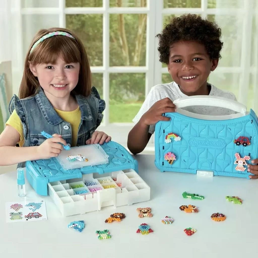 Yeni Aquabeads Çantalı Başlangıç Seti, renkli boncuklarla hayal gücünüzü ortaya çıkarabileceğiniz harika bir el sanatları deneyimi sunar. Şablonları takip ederek ya da kendi tasarımlarınızı oluşturarak tavşan, yunus, gökkuşağı, dondurma ve daha pek çok şekil tasarlayabilirsiniz.