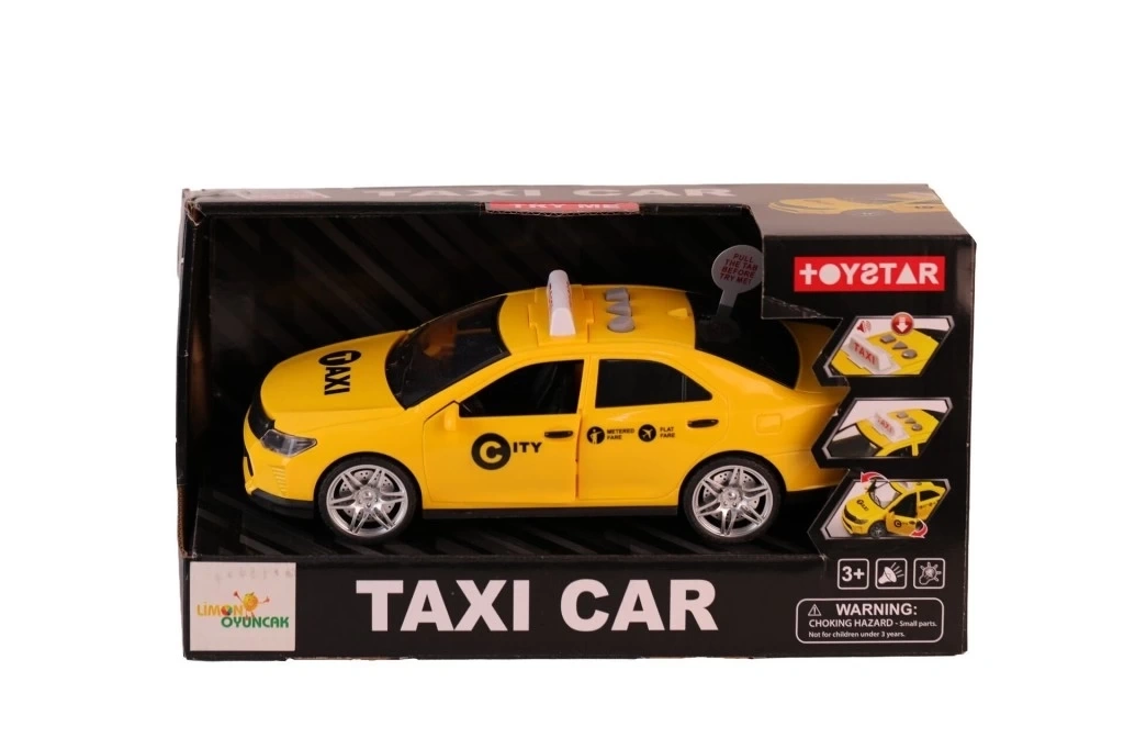 PİLLİ IŞIKLI TAKSİ Kapıları açılabilir Işıklı Müzikli Yaş bilgisi: 3+ Boyut: 24 cmÜrün görselinde birden fazla renk ve çeşit olduğunda stokta bulunan ve gönderilecek olan ürün için soru sor kısmından bizimle iletişime geçebilirsiniz
