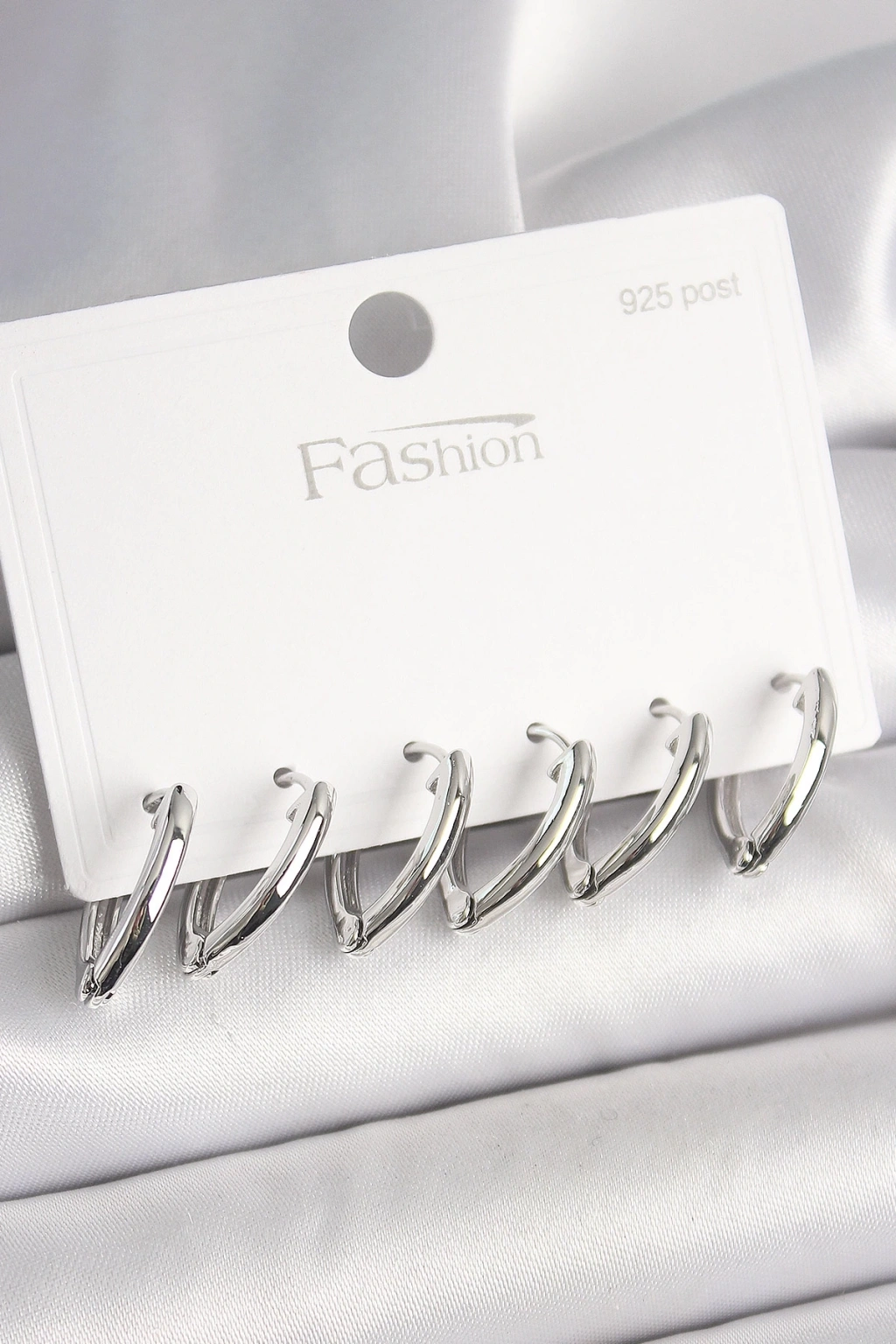 BFS 925 Ayar Gümüş Çivi Pirinç Gümüş Renk Üçgen Model Kadın Küpe Seti