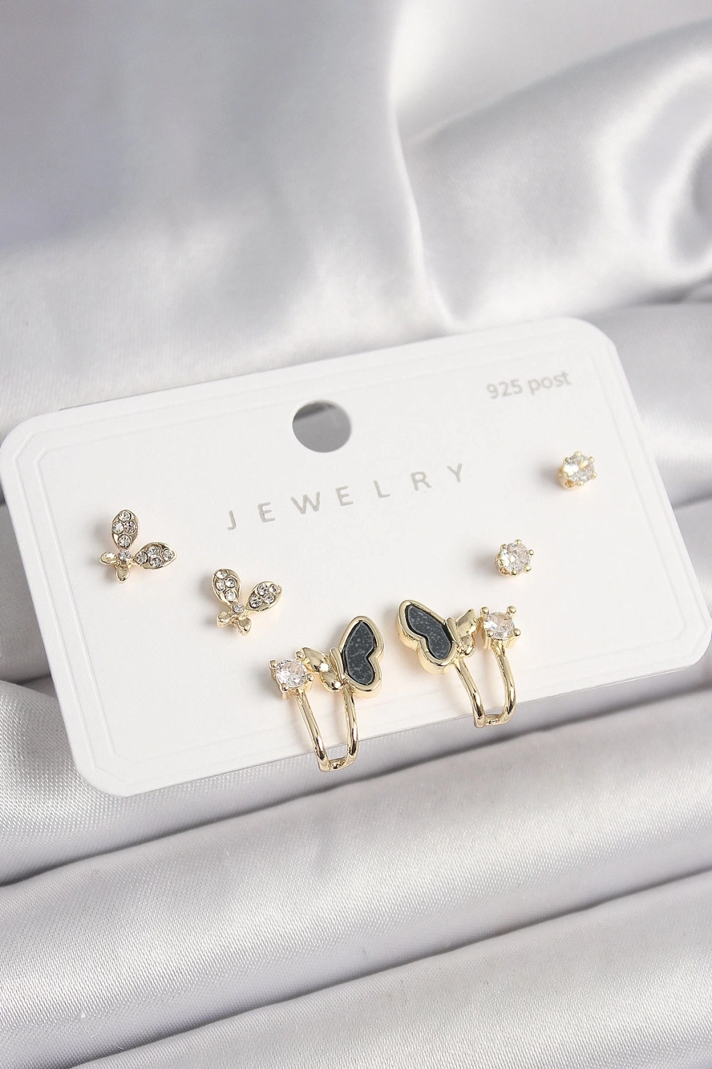 BFS 925 Ayar Gümüş Çivi Pirinç Zirkon Taşlı Kelebek Model Kadın Küpe Seti