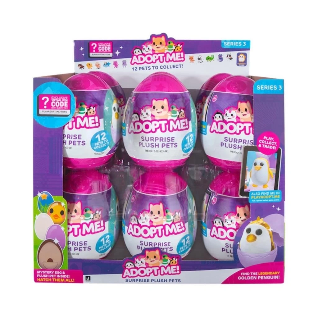 Civciv, Zebra, Ahtapot, Kuzu ve daha fazlasının yer aldığı, her biri 12 cm uzunluğundaki tam 12 asortiden herhangi biri olabilir! Üstelik çok nadir, metalik kumaşlı Altın Penguen de bu koleksiyonda! Ayrıca her Sürpriz Yumurta içerisinde, fenomen haline gelen Roblox dijital oyunundaki özel aksesuarlara erişim sunan çok özel bir şifre, çocuklara hediye olarak sunuluyor.