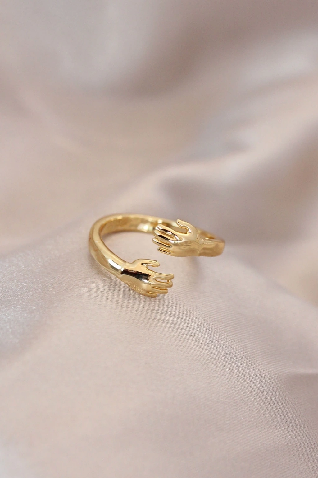 BFS Ayarlamalı Altın Renk Metal Sarılan Eller Model Yüzük