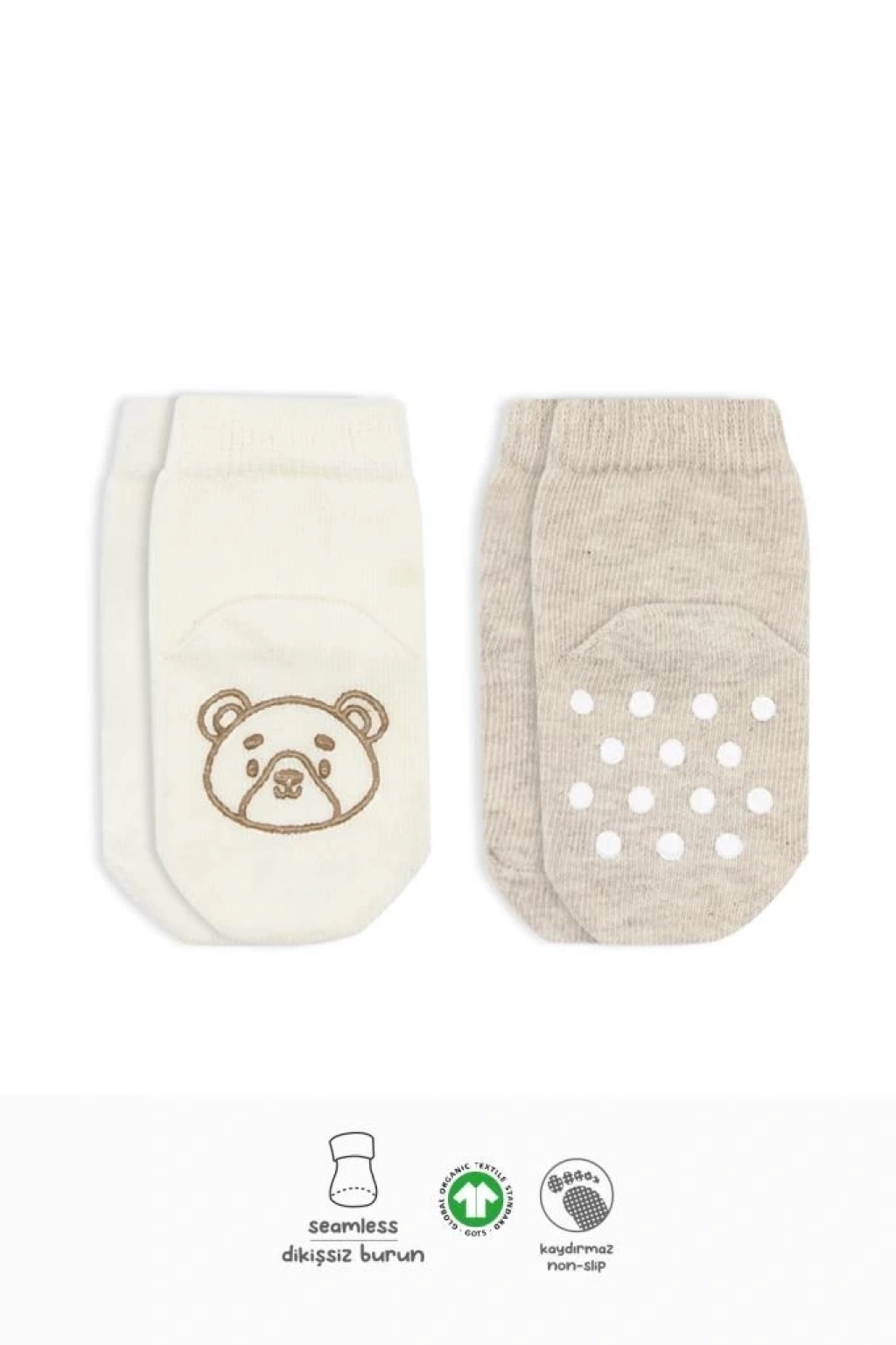 Ürünlerimiz özel parfümlü yumuşatıcılarla yıkanmaktadır. Bebeğinize zarar verecek hiçbir madde kullanılmamıştır. Kullanılan her şey sertifikalıdır. Alerjen ve kanserojen maddeler içermez. Bebeğinizin ayak parmaklarını her türlü mevsimde, güvdende tutar, yumuşacık ve konforlu tasarıma sahiptir. Birinci sınıf ince pamuklu malzeme, rahatlık ve nefes alma özelliği ile bebeğinize daha konforlu bir deneyim kazandırır. Kumaş Özellikleri: %80 Organik Pamuk / %17 Recycled Pre Comsumer Polyamide / %3 Elastan. Ters çevirerek 30°C'de yıkayınız.Ürün görselinde birden fazla renk ve çeşit olduğunda stokta bulunan ve gönderilecek olan ürün için soru sor kısmından bizimle iletişime geçebilirsiniz