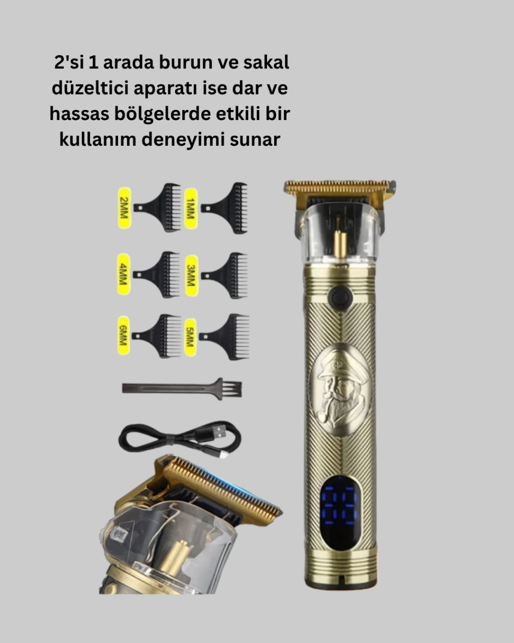 8 farklı saç kesim tarağı ve sakal için ek 3 başlık, her saç ve sakal tipine uygun kesim yapmanıza yardımcı olur. Burun, favori ve bıyık gibi bölgeler için özel başlık setiyle gelir. USB şarj özelliği sayesinde kablosuz kullanım rahatlığı sağlar. Kompakt tasarımıyla evde ve seyahatte kullanılabilir.