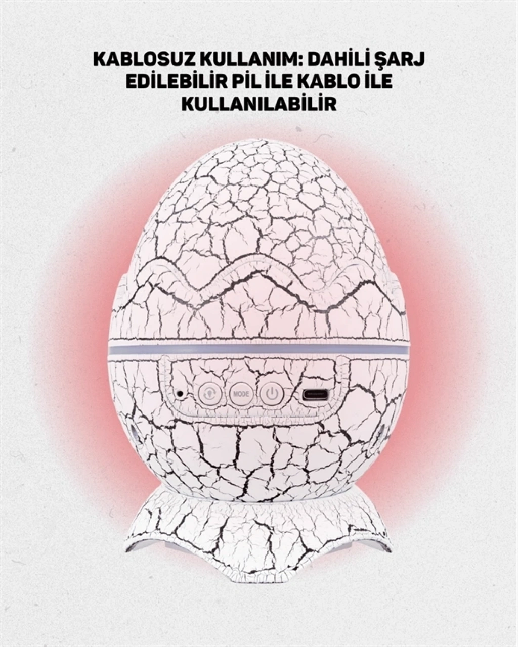 Dinozor yumurtası görünümüne sahip bu projektörlü gece lambası, hem dekoratif hem işlevsel kullanım sunar. Üzerindeki döner projektör sayesinde odanıza yıldızlı gökyüzü yansıtabilir, ışık modlarını isteğe göre değiştirebilirsiniz. Şık tasarımı sayesinde sadece çocuk odasında değil, oturma odasında ya da yatak odasında da kullanılabilir.