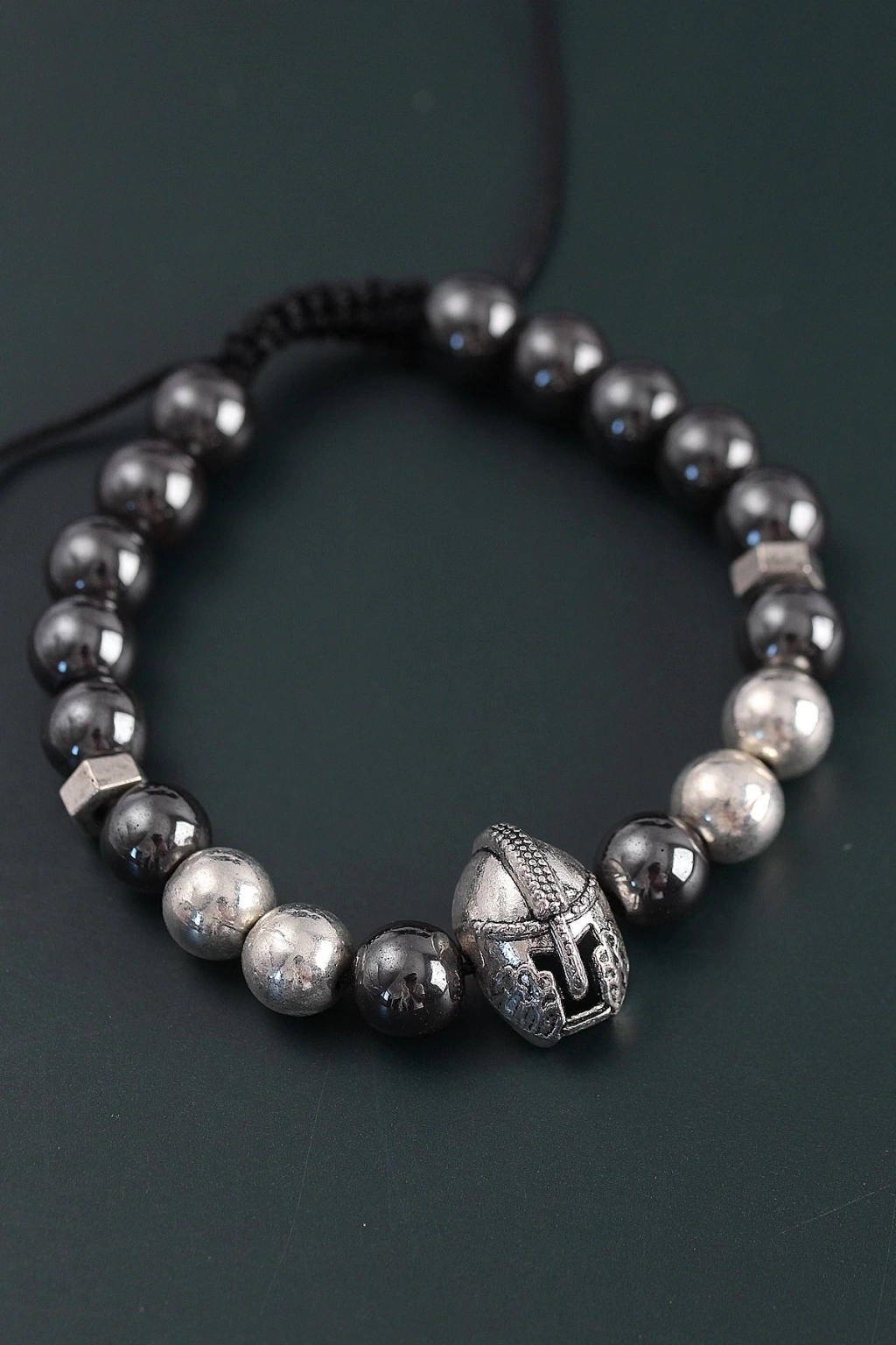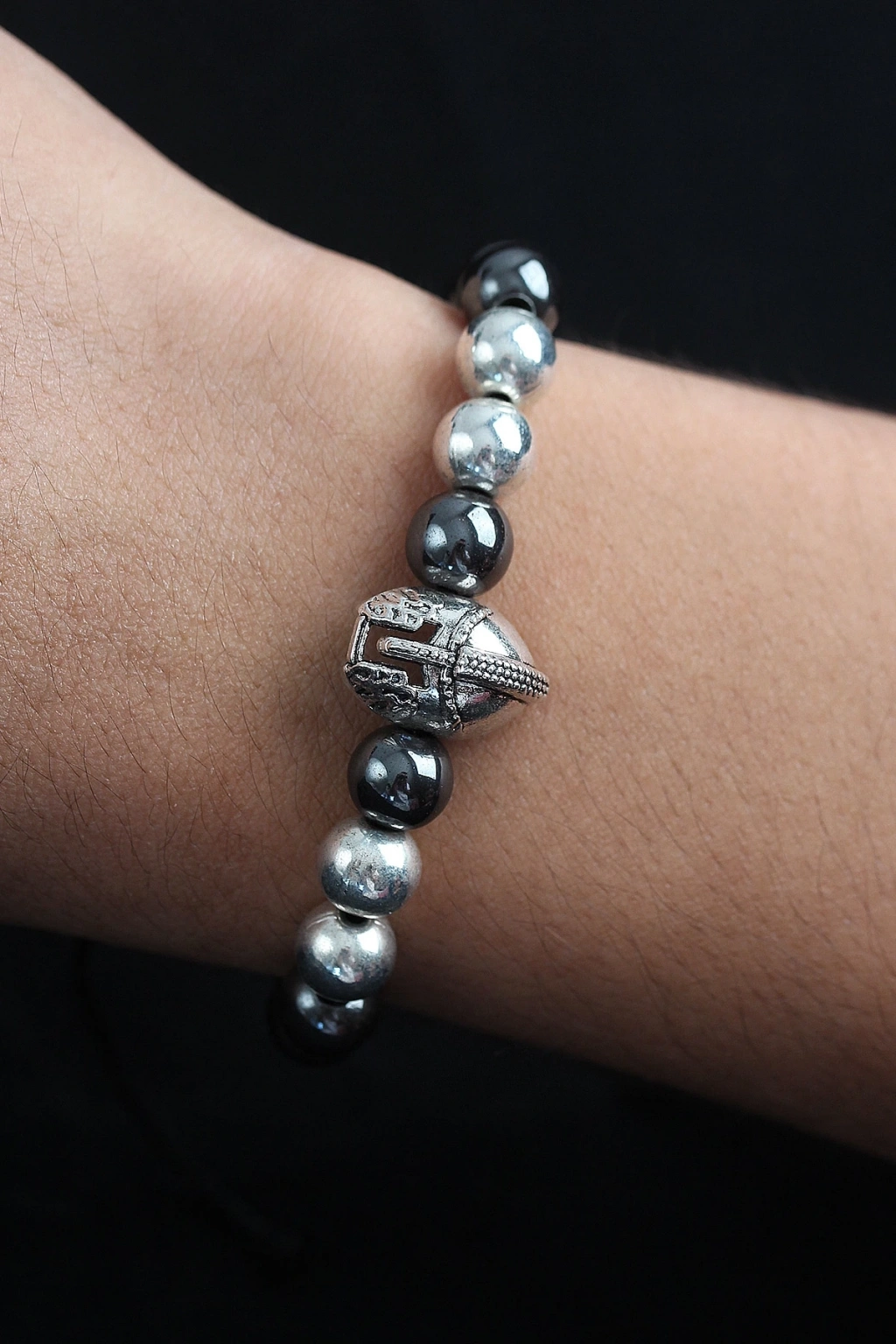 BFS Doğal Taş Gladyatör Model Gümüş Ve Füme Renk Asansörlü Erkek Bileklik
