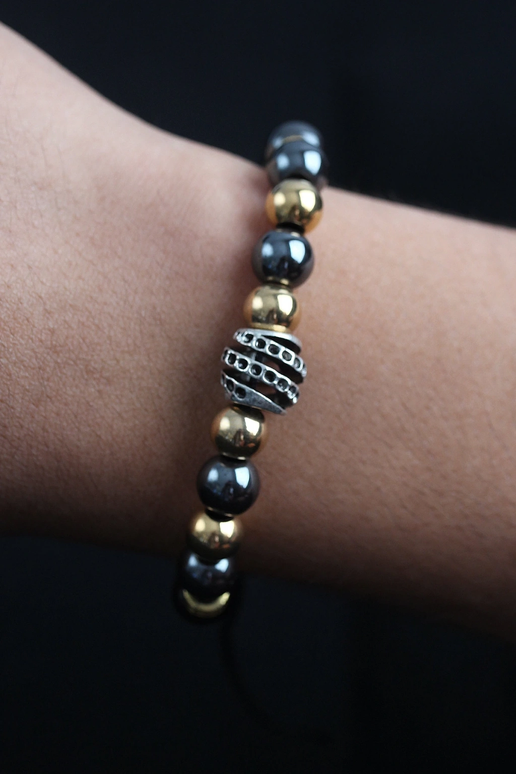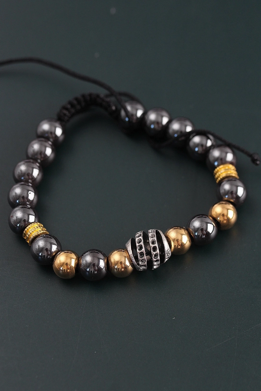 BFS Doğal Taş Sarmal Model Gold Ve Füme Renk Asansörlü Erkek Bileklik