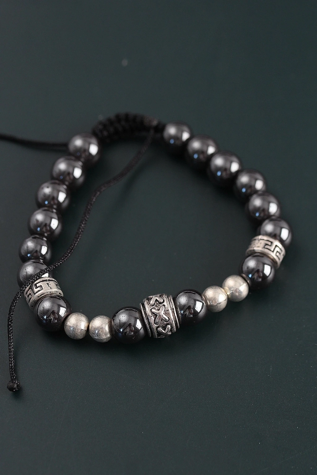 BFS Doğal Taş X Model Antrasit Renk Asansörlü Erkek Bileklik