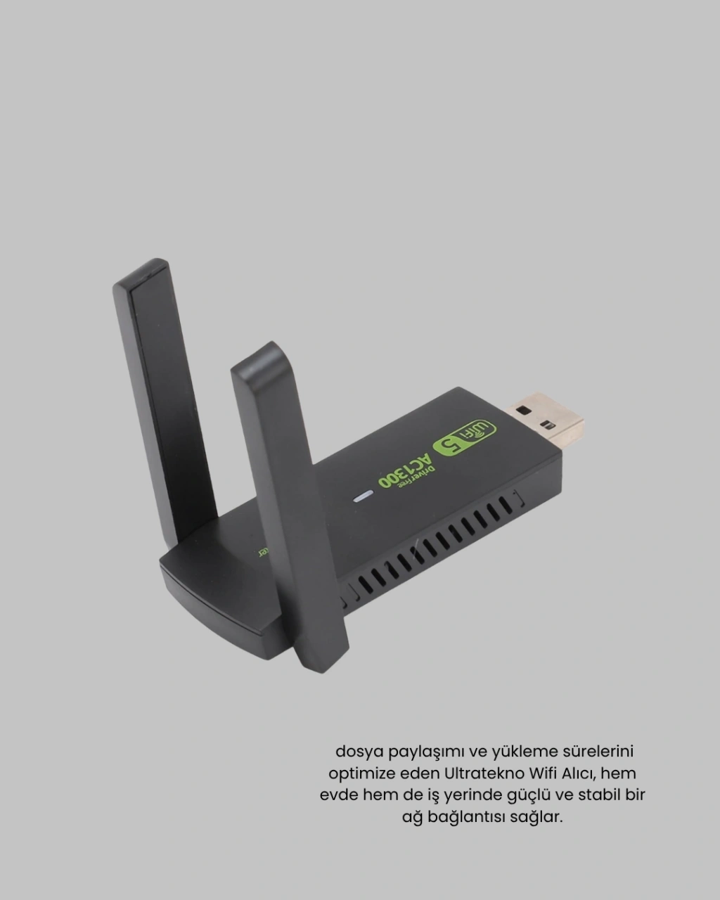 Yüksek hız ve kararlılığı bir araya getiren Dual Band USB WiFi Adaptör, internet deneyiminizi tamamen değiştiriyor!Çift bant teknolojisi sayesinde 2.4 GHz ve 5.8 GHz frekanslarında çalışarak, 1200 Mbps’ye kadar bağlantı hızı sunar. Bu sayede HD video izleme, online oyun oynama veya büyük dosyalar indirme gibi yüksek veri gerektiren işlemleri kesintisiz şekilde gerçekleştirebilirsiniz.Çift antenli güçlü tasarımı, geniş bir kapsama alanı sağlar ve zayıf sinyalli bölgelerde bile istikrarlı bir bağlantı sunar. İnternet kesintileri veya düşük sinyal sorunları artık geçmişte kalıyor.USB 3.0 bağlantı desteği, veri transfer hızını artırarak gecikmeleri en aza indirir. Bu sayede kablosuz bağlantıda maksimum performans elde edilir.Windows 10/8/7/Vista/XP/2000 ve Mac OS X 10.15 işletim sistemleriyle tam uyumludur. Eski ya da yeni bilgisayar fark etmeksizin kolayca tanınır ve hızlı kurulum imkânı sunar. Tak-çalıştır özelliği sayesinde teknik bilgiye gerek kalmadan anında kullanıma başlayabilirsiniz.Hem ev kullanıcıları hem ofis ortamları için ideal olan bu adaptör, stabil, güçlü ve hızlı internet bağlantısı arayanlar için mükemmel bir çözümdür.Modern, pratik ve güçlü: Dual Band USB WiFi Adaptör ile her yerde kesintisiz bağlantı keyfi sizi bekliyor!